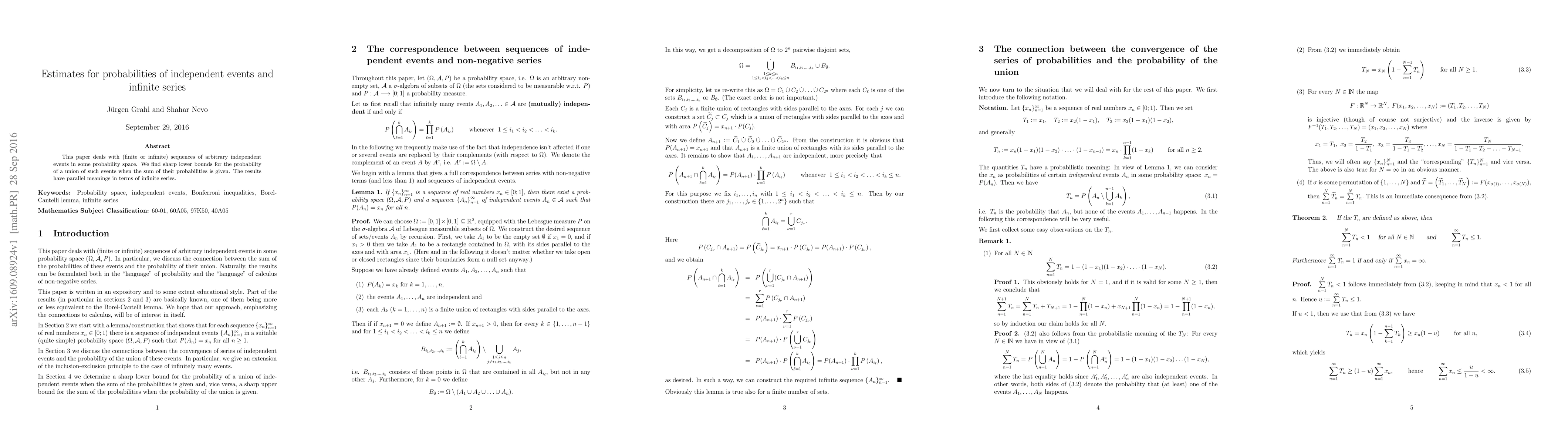This paper deals with (finite or infinite) sequences of arbitrary independent events in some probability space. We find sharp lower bounds for the probability of a union of such events when the sum of their probabilities is given. The results have parallel meanings in terms of infinite series.