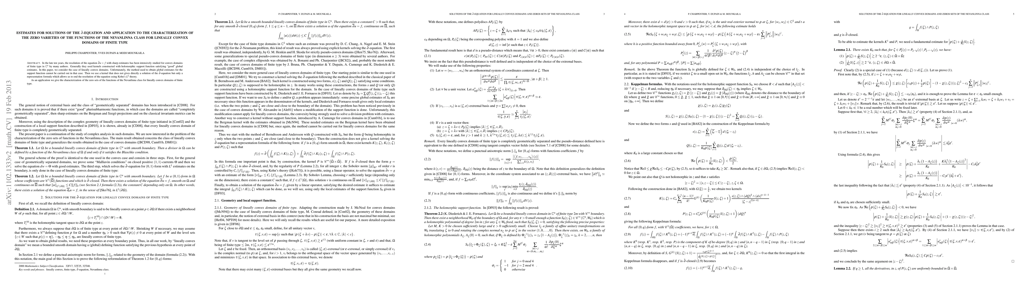 Researchers develop a method to solve the complex partial differential equation for lineally convex domains of finite type, leading to a characterization of zero sets for functions in the Nevanlinna class.