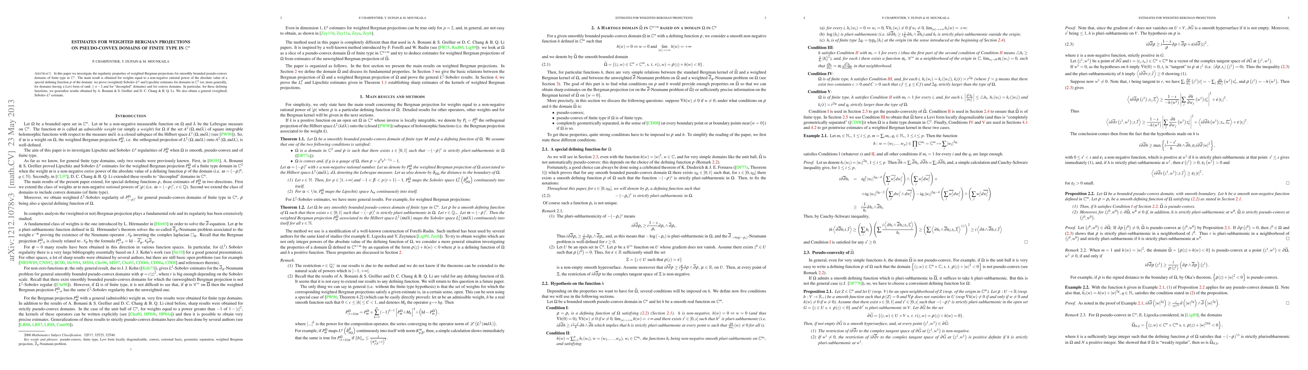 In this paper we investigate the regularity properties of weighted Bergman projections for smoothly bounded pseudo-convex domains of finite type in $\mathbb{C}^{n}$. The main result is obtained for weights equal to a non negative rational power of the absolute value of a special defining function $\rho$ of the domain: we prove (weighted) Sobolev-$L^{p}$ and Lipchitz estimates for domains in $\mathbb{C}^{2}$ (or, more generally, for domains having a Levi form of rank $\geq n-2$ and for "decoupled" domains) and for convex domains. In particular, for these defining functions, we generalize results obtained by A. Bonami & S. Grellier and D. C. Chang & B. Q. Li. We also obtain a general (weighted) Sobolev-$L^{2}$ estimate.