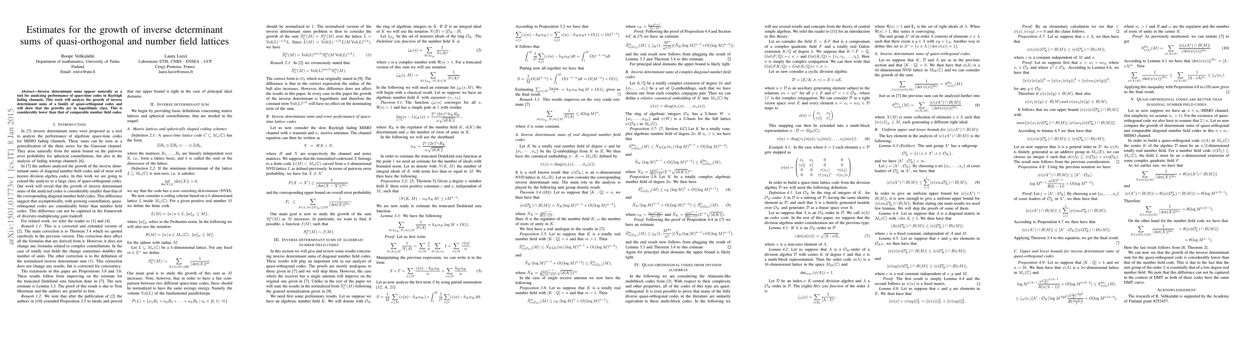 Inverse determinant sums appear naturally as a tool for analyzing performance of space-time codes in Rayleigh fading channels. This work will analyze the growth of inverse determinant sums of a family of quasi-orthogonal codes and will show that the growths are in logarithmic class. This is considerably lower than that of comparable number field codes.
