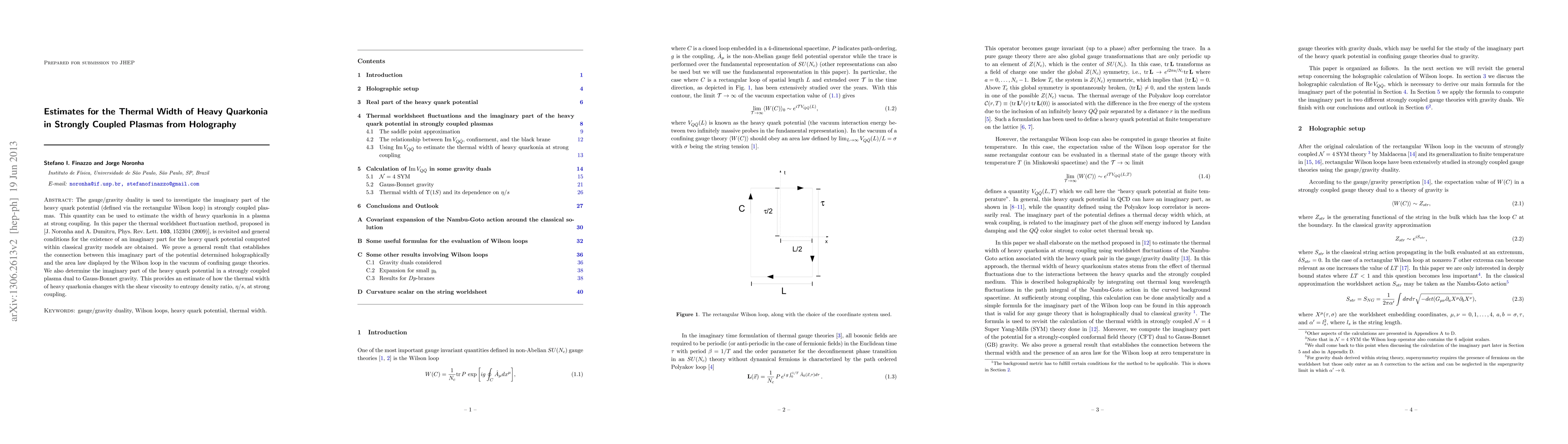 This paper uses gauge/gravity duality to estimate the thermal width of heavy quarkonia in strongly coupled plasmas, finding an imaginary part of the heavy quark potential via the thermal worldsheet fluctuation method. It establishes a connection between this potential and the area law in vacuum, and provides an estimate of the thermal width based on the shear viscosity to entropy density ratio.