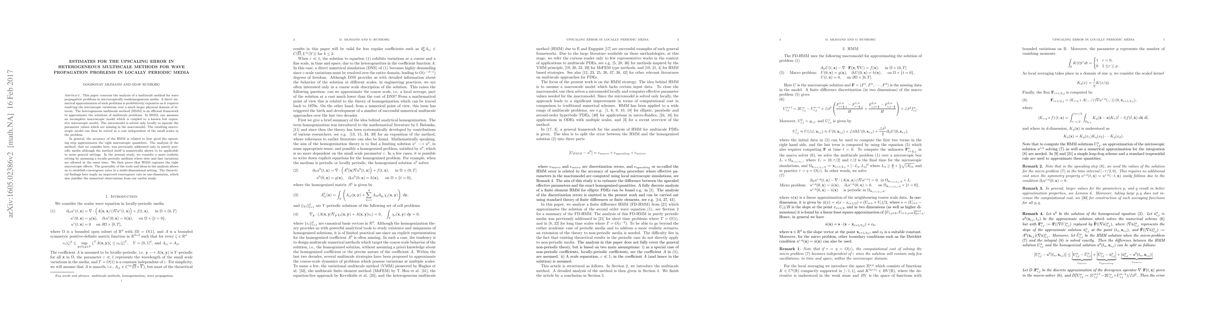 This paper concerns the analysis of a multiscale method for wave propagation problems in microscopically nonhomogeneous media. A direct numerical approximation of such problems is prohibitively expensive as it requires resolving the microscopic variations over a much larger physical domain of interest. The heterogeneous multiscale method (HMM) is an efficient framework to approximate the solutions of multiscale problems. In HMM, one assumes an incomplete macroscopic model which is coupled to a known but expensive microscopic model. The micromodel is solved only locally to upscale the parameter values which are missing in the macromodel. The resulting macroscopic model can then be solved at a cost independent of the small scales in the problem. In general, the accuracy of the HMM is related to how good the upscaling step approximates the right macroscopic quantities. The analysis of the method, that we consider here, was previously addressed only in purely periodic media although the method itself is numerically shown to be applicable to more general settings. In the present study, we consider a more realistic setting by assuming a locally-periodic medium where slow and fast variations are allowed at the same time. We then prove that HMM captures the right macroscopic effects. The generality of the tools and ideas in the analysis allows us to establish convergence rates in a multi-dimensional setting. The theoretical findings here imply an improved convergence rate in one-dimension, which also justifies the numerical observations from our earlier study.