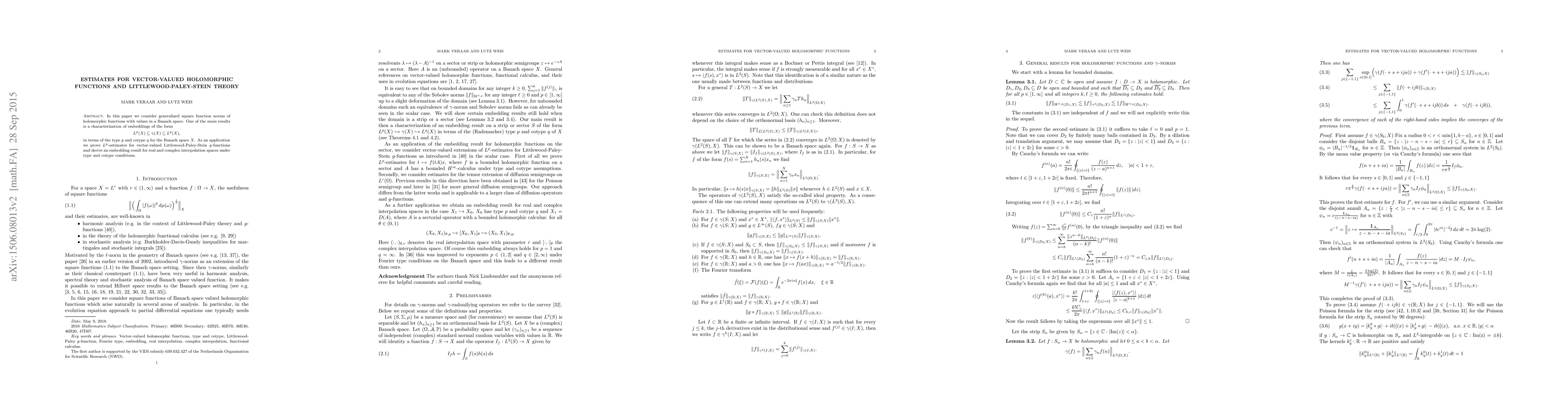 In this paper we consider generalized square function norms of holomorphic functions with values in a Banach space. One of the main results is a characterization of embeddings of the form \[L^p(X)\subseteq \gamma(X) \subseteq L^q(X),\] in terms of the type $p$ and cotype $q$ for the Banach space $X$. As an application we prove $L^p$-estimates for vector-valued Littlewood-Paley-Stein $g$-functions and derive an embedding result for real and complex interpolation spaces under type and cotype conditions.