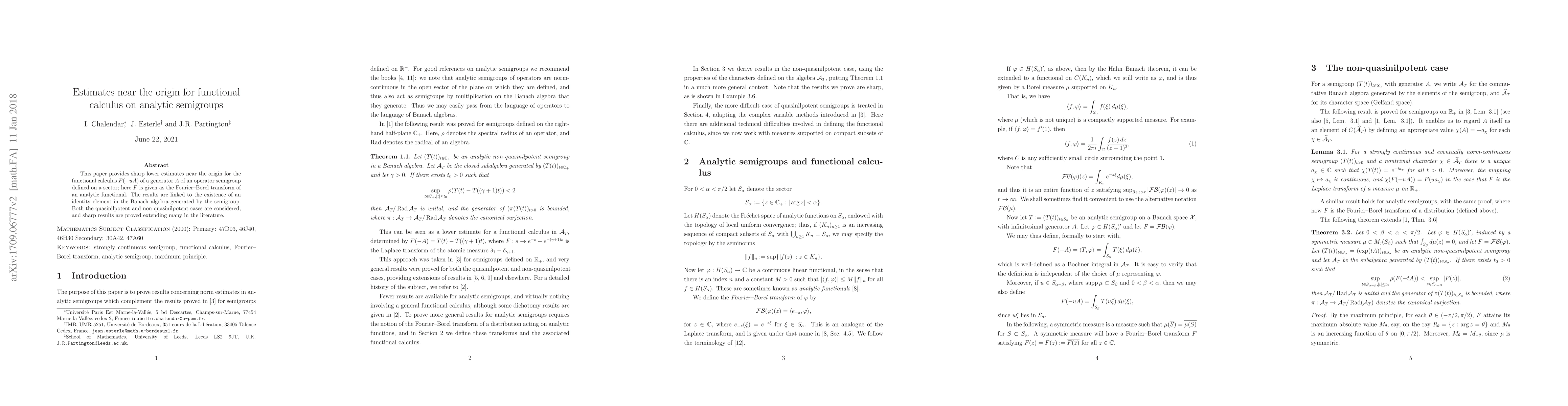 This paper provides sharp lower estimates near the origin for the functional calculus $F(-uA)$ of a generator $A$ of an operator semigroup defined on a sector; here $F$ is given as the Fourier--Borel transform of an analytic functional. The results are linked to the existence of an identity element in the Banach algebra generated by the semigroup. Both the quasinilpotent and non-quasinilpotent cases are considered, and sharp results are proved extending many in the literature.