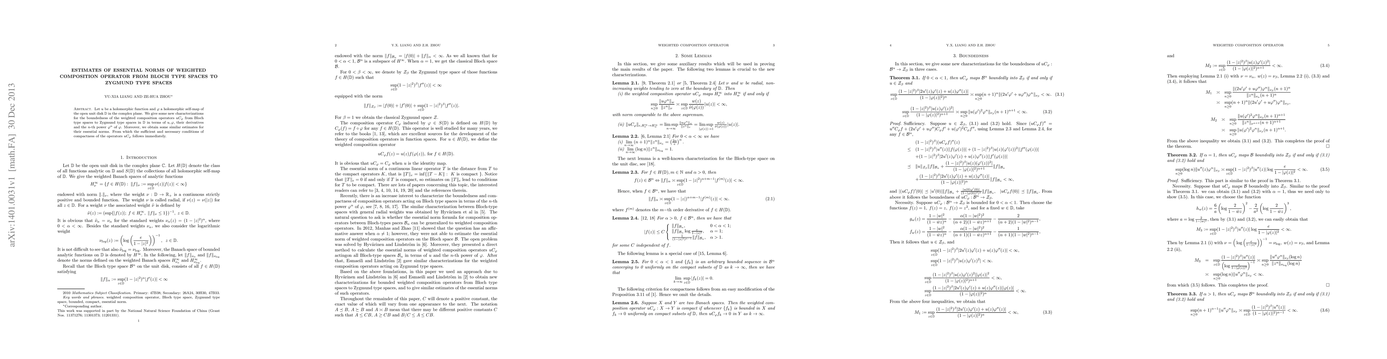 Let $u$ be a holomorphic function and $\varphi$ a holomorphic self-map of the open unit disk $\mathbb{D}$ in the complex plane. We give some new characterizations for the boundedness of the weighted composition operators $uC_{\varphi}$ from Bloch type spaces to Zygmund type spaces in $\mathbb{D}$ in terms of $u, \varphi$, their derivatives and the $n$-th power $\varphi^n$ of $\varphi$. Moreover, we obtain some similar estimates for their essential norms. From which the sufficient and necessary conditions of compactness of the operators $uC_{\varphi}$ follows immediately.