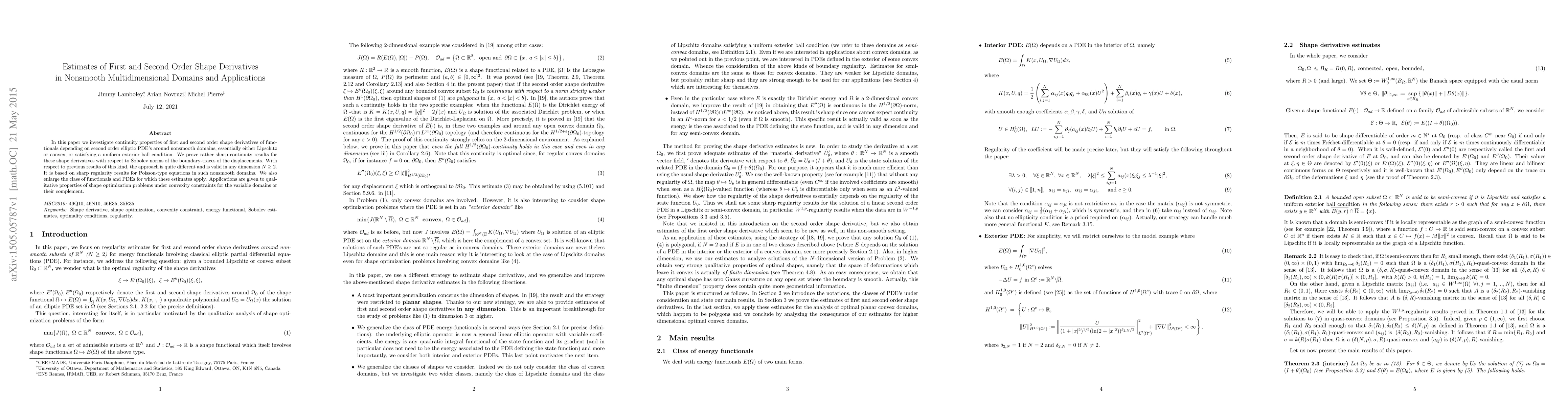 This paper investigates the continuity properties of first and second order shape derivatives for functionals dependent on second-order elliptic PDEs in nonsmooth multidimensional domains. It establishes sharp continuity results using novel approaches based on Poisson-type equation regularity, with applications to shape optimization problems under convexity constraints.