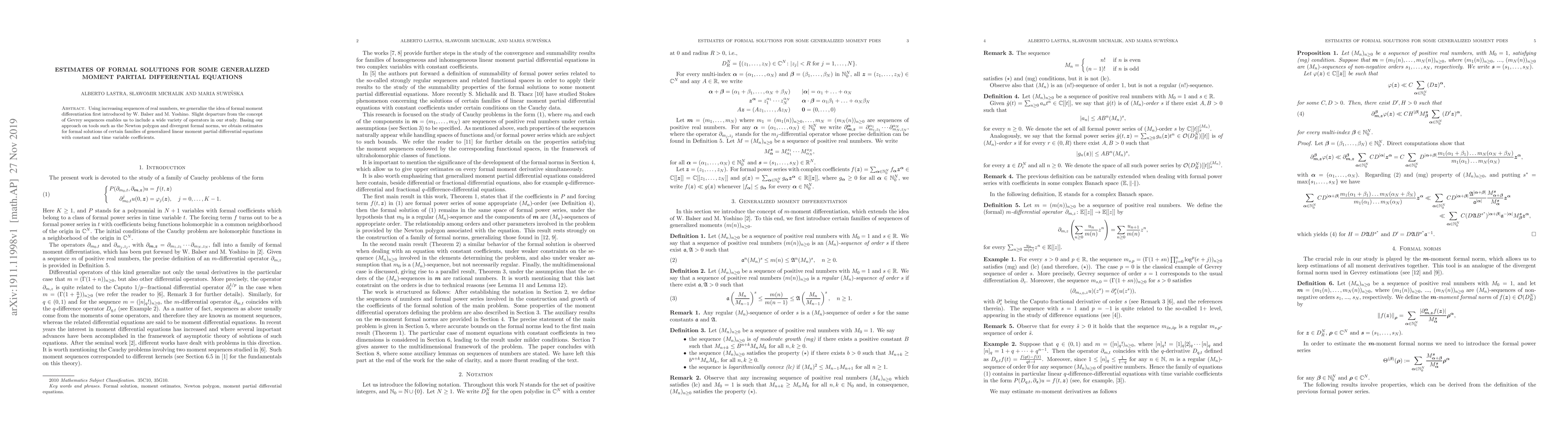 This paper generalizes formal moment differentiation to a broader class of operators using sequences beyond Gevrey sequences. It leverages tools like the Newton polygon and divergent formal norms to provide estimates for formal solutions of generalized linear moment partial differential equations.