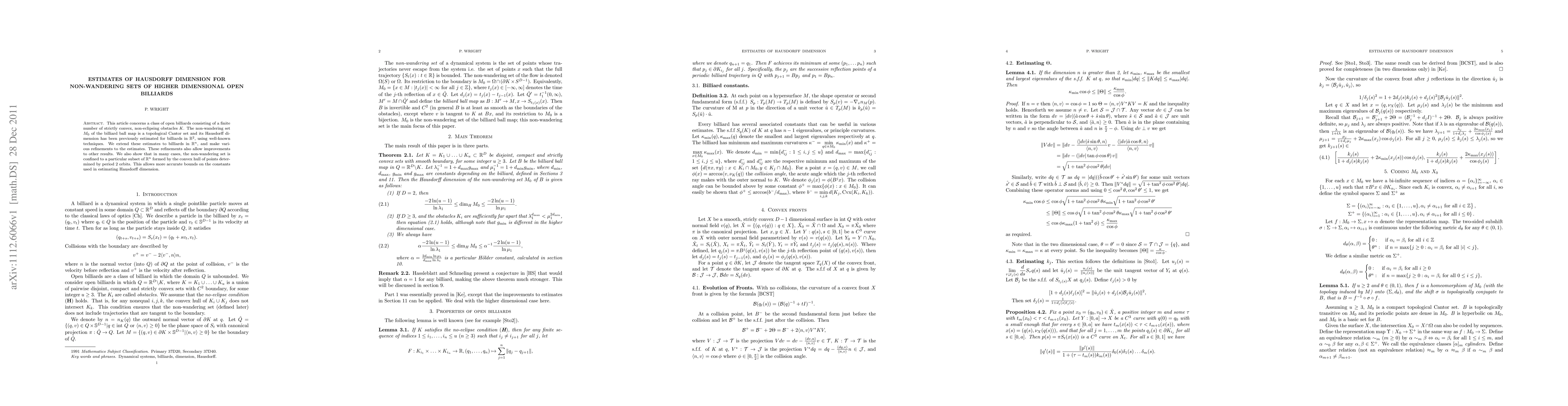 This paper extends previous estimates of Hausdorff dimension for the non-wandering set of higher-dimensional open billiards, refining these estimates and demonstrating that the non-wandering set often lies within a specific subset formed by the convex hull of period 2 orbits.