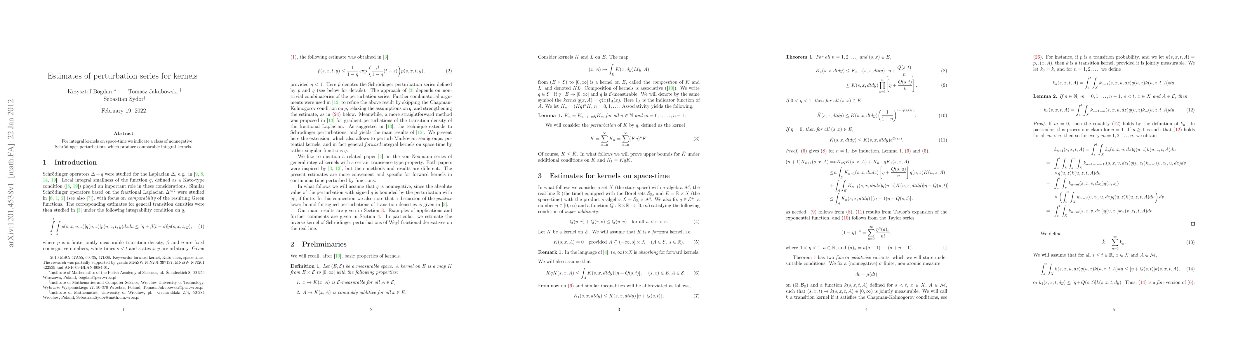 For integral kernels on space-time we indicate a class of nonnegative Schr\"odinger perturbations which produce comparable integral kernels.