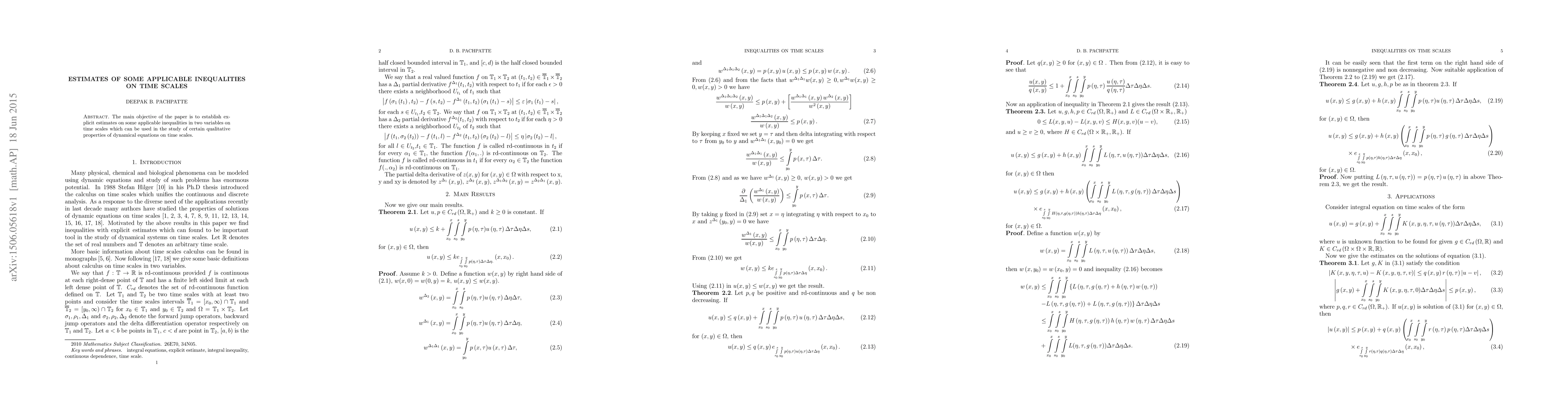 Summary: This paper aims to derive explicit estimates for certain inequalities in two variables on time scales, providing tools for analyzing the qualitative properties of dynamical equations within this framework. The results are expected to enhance the understanding of time scale calculus.