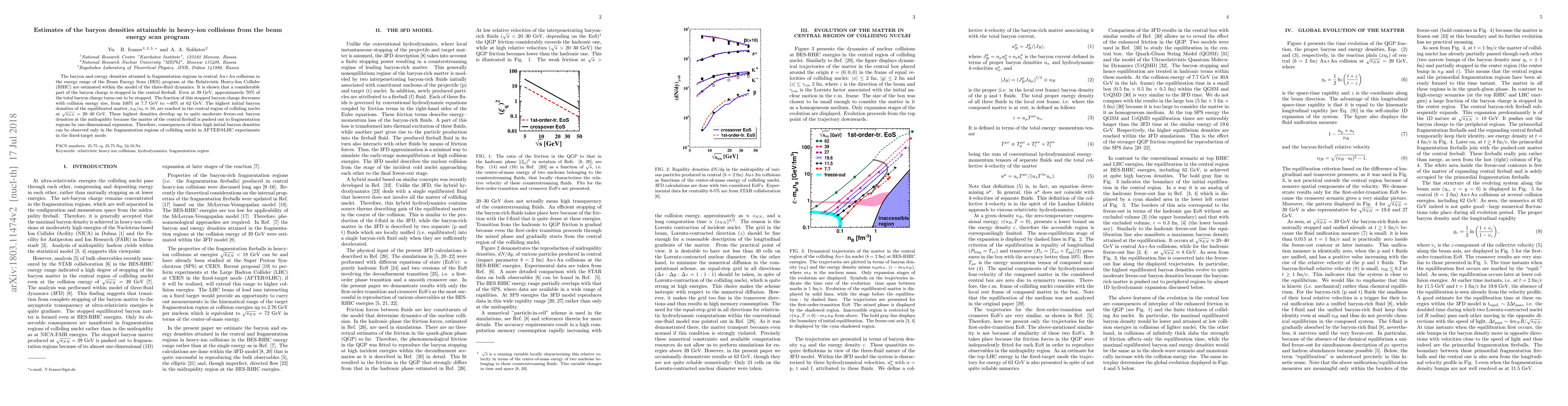 This paper estimates baryon densities in central Au+Au collisions during the Beam Energy Scan program at RHIC, finding that 70% of baryon charge is stopped at 39 GeV, decreasing with higher energies. The highest initial baryon densities, around 10 times nuclear saturation density, occur at 20-40 GeV, influencing fragmentation regions observable in AFTER@LHC experiments.