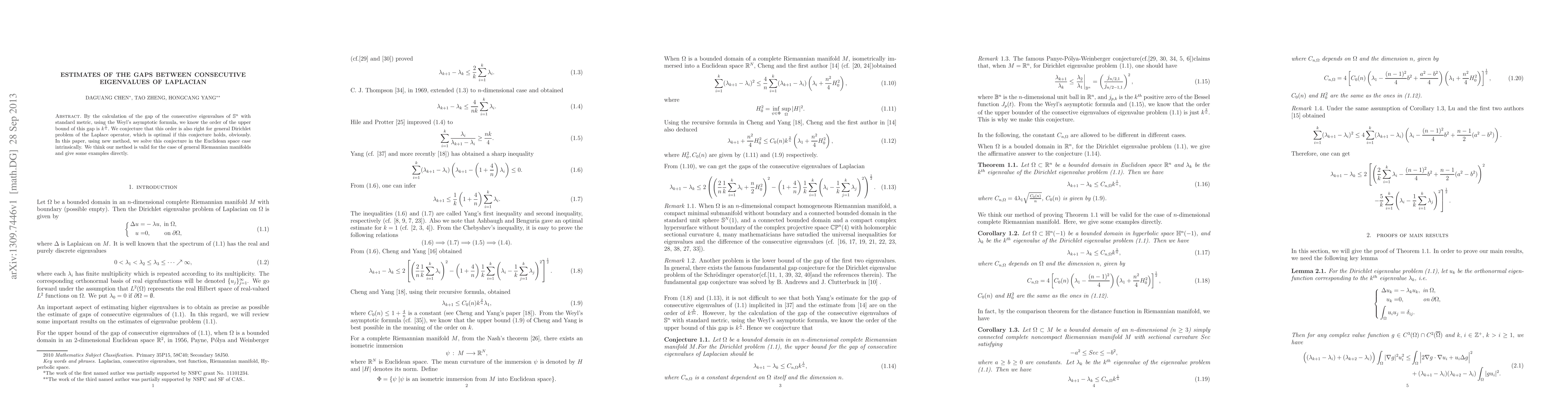 This paper investigates the order of the gap between consecutive eigenvalues of the Laplacian operator in Riemannian manifolds, proposing a conjecture that the upper bound is $k^{rac{1}{n}}$ for general Dirichlet problems, and providing an intrinsic method to solve this conjecture in Euclidean space.