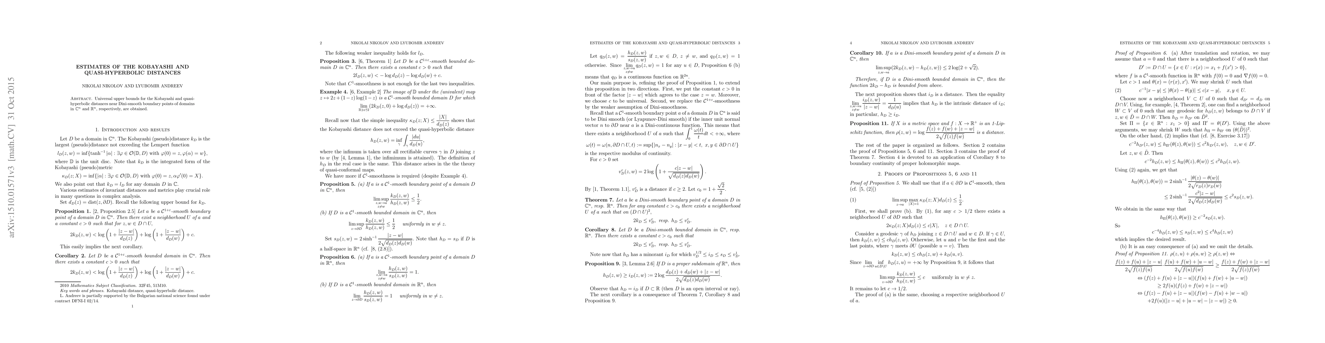 Universal upper bounds for the Kobayashi and quasi-hyperbolic distances near Dini-smooth boundary points of domains in $\C^n$ and $\R^n,$ respectively, are obtained.
