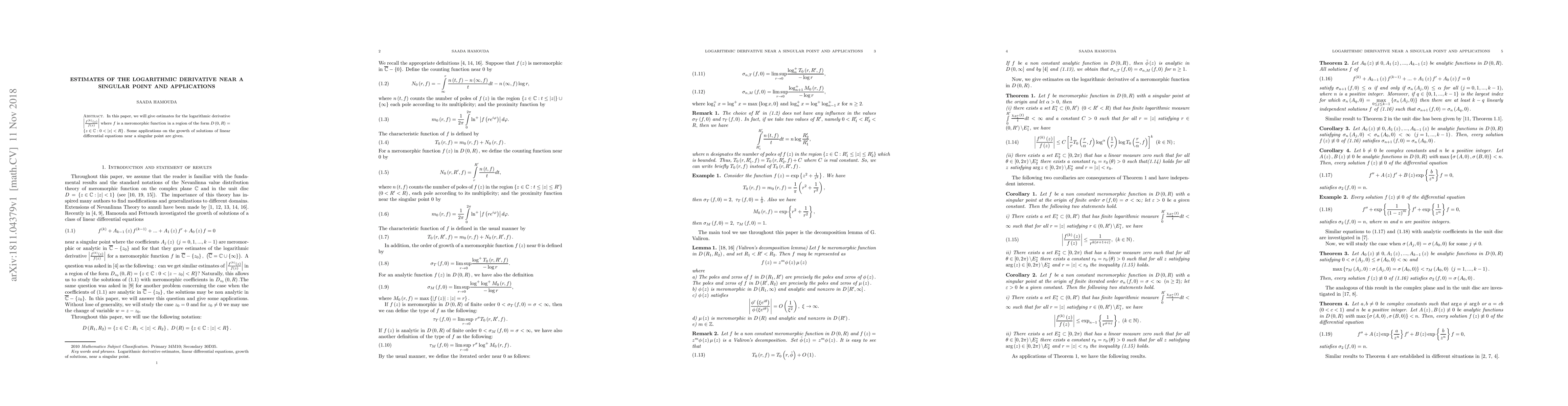 In this paper, we will give estimates for the logarithmic derivative $