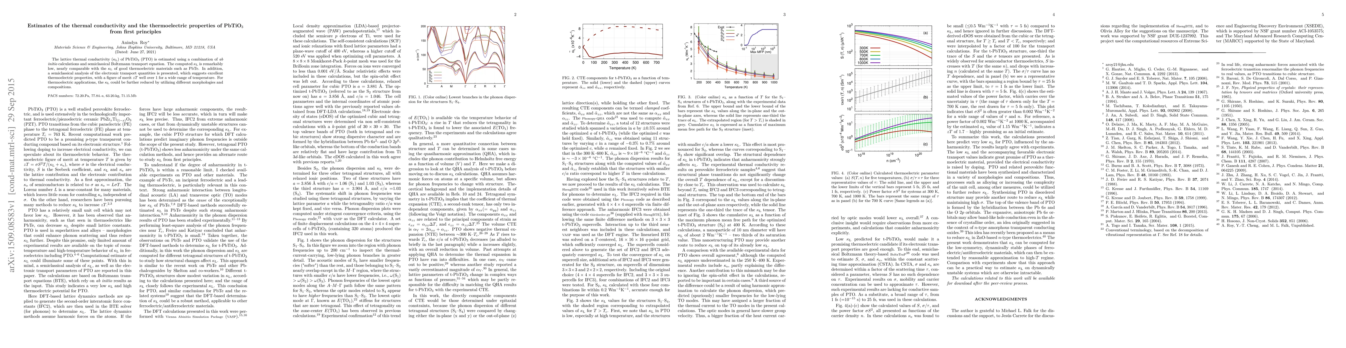 The lattice thermal conductivity ($\kappa_{\rm L}$) of PbTiO$_3$ (PTO) is estimated using a combination of {\em ab initio} calculations and semiclassical Boltzmann transport equation. The computed $\kappa_{\rm L}$ is remarkably low, nearly comparable with the $\kappa_{\rm L}$ of good thermoelectric materials such as PbTe. In addition, a semiclassical analysis of the electronic transport quantities is presented, which suggests excellent thermoelectric properties, with a figure of merit $zT$ well over 1 for a wide range of temperature. For thermoelectric applications, the $\kappa_{\rm L}$ could be further reduced by utilizing different morphologies and compositions.