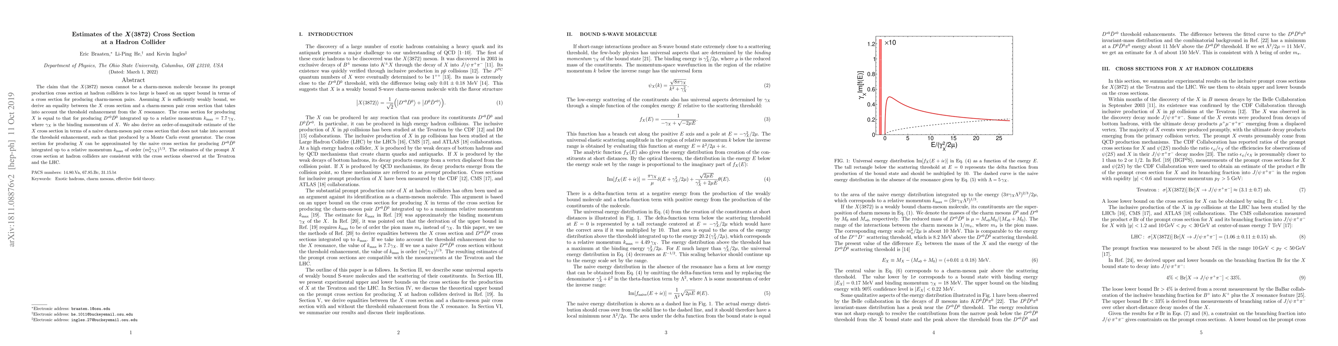 Researchers estimate a charm-meson molecule $X(3872)$ meson cross section at hadron colliders to be consistent with previous Tevatron and LHC observations.