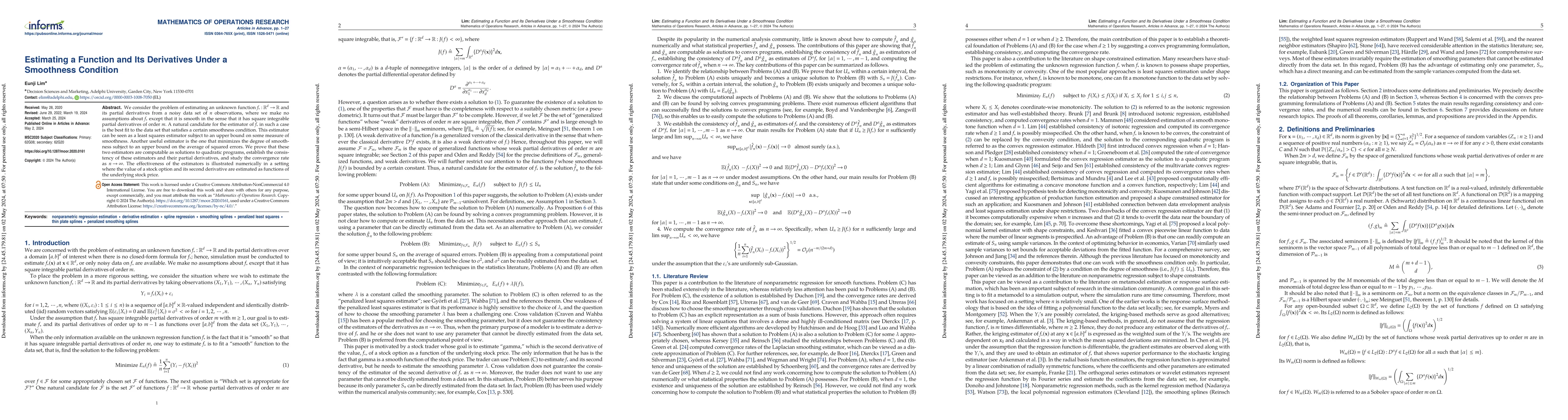 We consider the problem of estimating an unknown function f* and its partial derivatives from a noisy data set of n observations, where we make no assumptions about f* except that it is smooth in the sense that it has square integrable partial derivatives of order m. A natural candidate for the estimator of f* in such a case is the best fit to the data set that satisfies a certain smoothness condition. This estimator can be seen as a least squares estimator subject to an upper bound on some measure of smoothness. Another useful estimator is the one that minimizes the degree of smoothness subject to an upper bound on the average of squared errors. We prove that these two estimators are computable as solutions to quadratic programs, establish the consistency of these estimators and their partial derivatives, and study the convergence rate as n increases to infinity. The effectiveness of the estimators is illustrated numerically in a setting where the value of a stock option and its second derivative are estimated as functions of the underlying stock price.