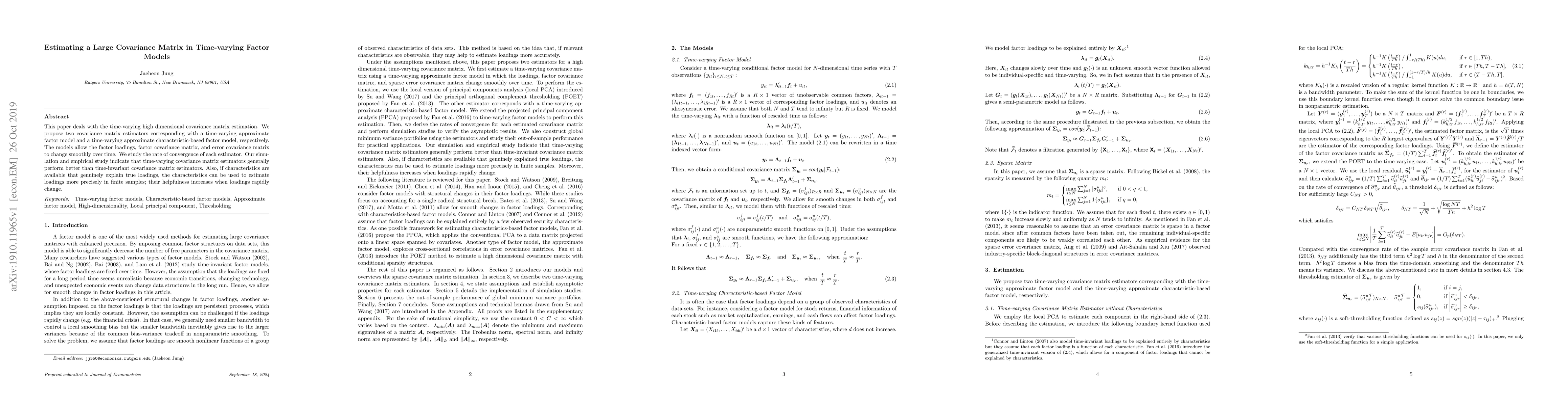 This paper proposes two time-varying covariance matrix estimators based on factor models, showing improved performance over time-invariant estimators in simulations and empirical studies. The use of characteristics to explain loadings enhances precision, especially when loadings change rapidly.