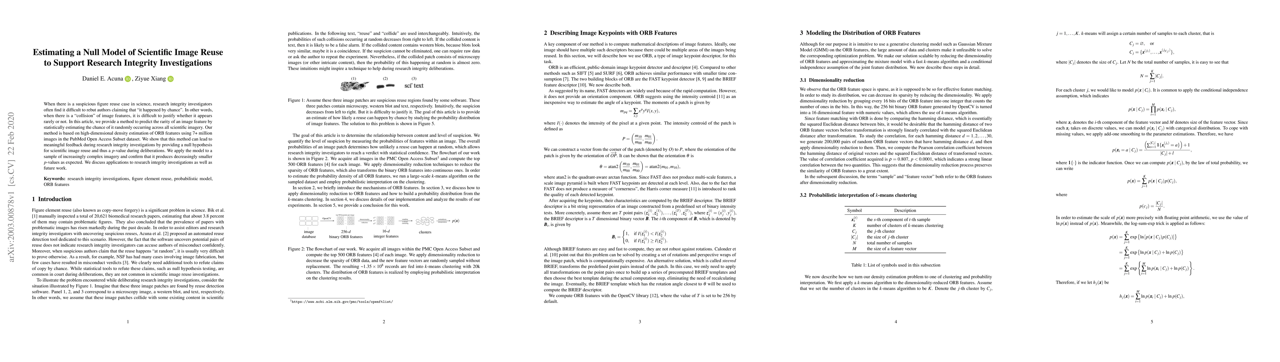 When there is a suspicious figure reuse case in science, research integrity investigators often find it difficult to rebut authors claiming that "it happened by chance". In other words, when there is a "collision" of image features, it is difficult to justify whether it appears rarely or not. In this article, we provide a method to predict the rarity of an image feature by statistically estimating the chance of it randomly occurring across all scientific imagery. Our method is based on high-dimensional density estimation of ORB features using 7+ million images in the PubMed Open Access Subset dataset. We show that this method can lead to meaningful feedback during research integrity investigations by providing a null hypothesis for scientific image reuse and thus a p-value during deliberations. We apply the model to a sample of increasingly complex imagery and confirm that it produces decreasingly smaller p-values as expected. We discuss applications to research integrity investigations as well as future work.
