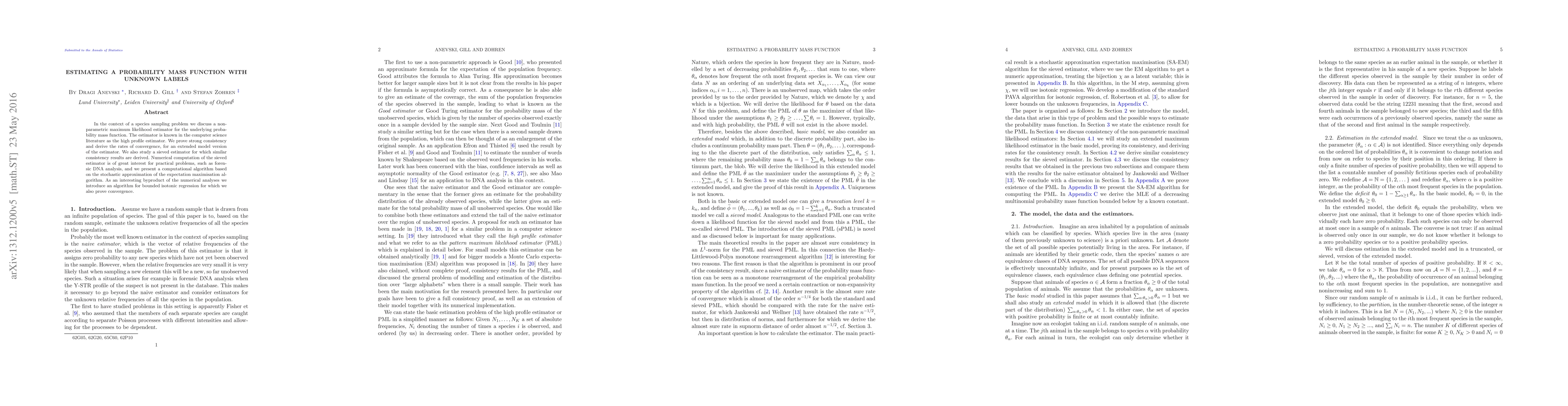 In the context of a species sampling problem we discuss a non-parametric maximum likelihood estimator for the underlying probability mass function. The estimator is known in the computer science literature as the high profile estimator. We prove strong consistency and derive the rates of convergence, for an extended model version of the estimator. We also study a sieved estimator for which similar consistency results are derived. Numerical computation of the sieved estimator is of great interest for practical problems, such as forensic DNA analysis, and we present a computational algorithm based on the stochastic approximation of the expectation maximisation algorithm. As an interesting byproduct of the numerical analyses we introduce an algorithm for bounded isotonic regression for which we also prove convergence.
