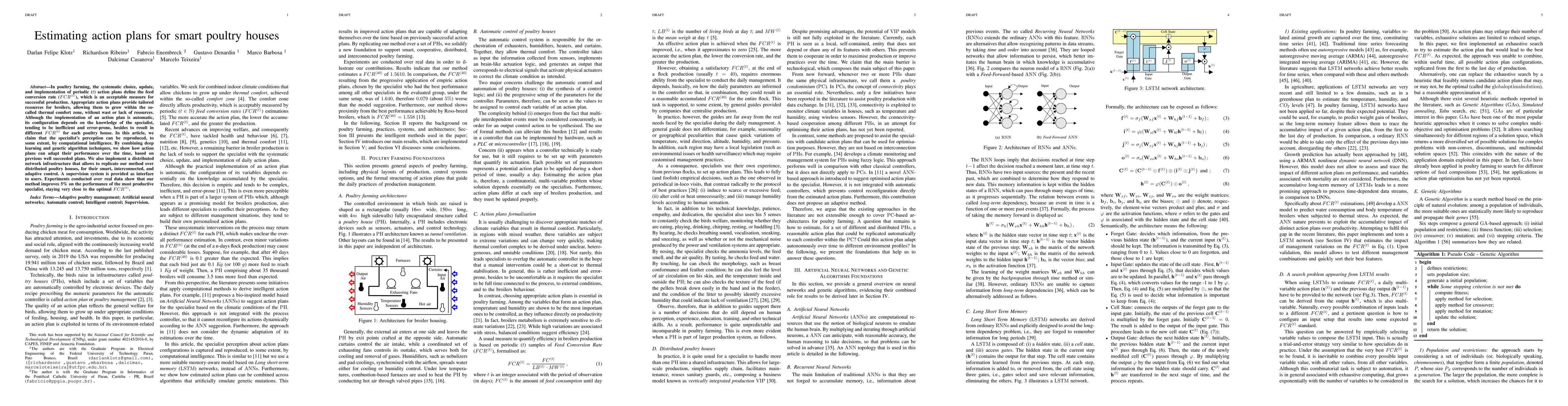 This paper proposes a computational intelligence approach combining deep learning and genetic algorithms to estimate adaptive action plans for smart poultry houses, aiming to optimize feed conversion rates. The method demonstrates a 5% improvement over the best specialist's performance, closely matching optimal feed conversion rates.