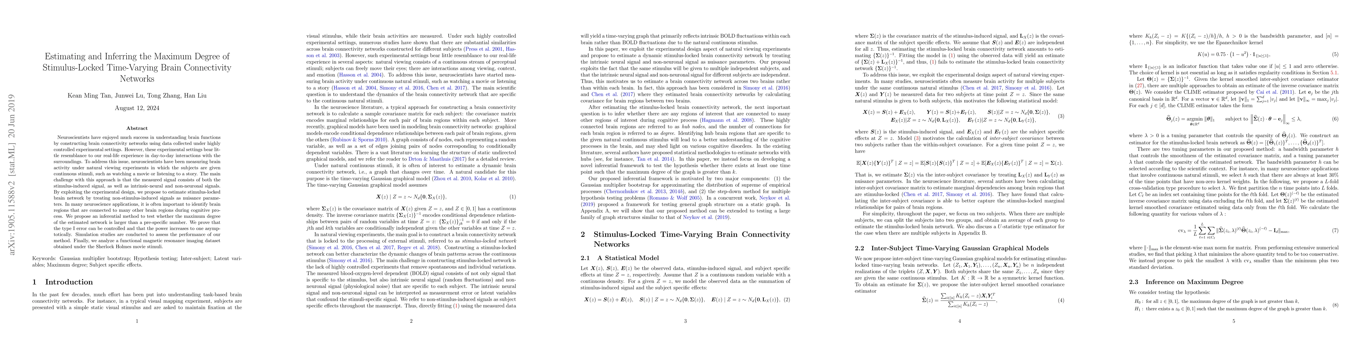 Neuroscientists have enjoyed much success in understanding brain functions by constructing brain connectivity networks using data collected under highly controlled experimental settings. However, these experimental settings bear little resemblance to our real-life experience in day-to-day interactions with the surroundings. To address this issue, neuroscientists have been measuring brain activity under natural viewing experiments in which the subjects are given continuous stimuli, such as watching a movie or listening to a story. The main challenge with this approach is that the measured signal consists of both the stimulus-induced signal, as well as intrinsic-neural and non-neuronal signals. By exploiting the experimental design, we propose to estimate stimulus-locked brain network by treating non-stimulus-induced signals as nuisance parameters. In many neuroscience applications, it is often important to identify brain regions that are connected to many other brain regions during cognitive process. We propose an inferential method to test whether the maximum degree of the estimated network is larger than a pre-specific number. We prove that the type I error can be controlled and that the power increases to one asymptotically. Simulation studies are conducted to assess the performance of our method. Finally, we analyze a functional magnetic resonance imaging dataset obtained under the Sherlock Holmes movie stimuli.
