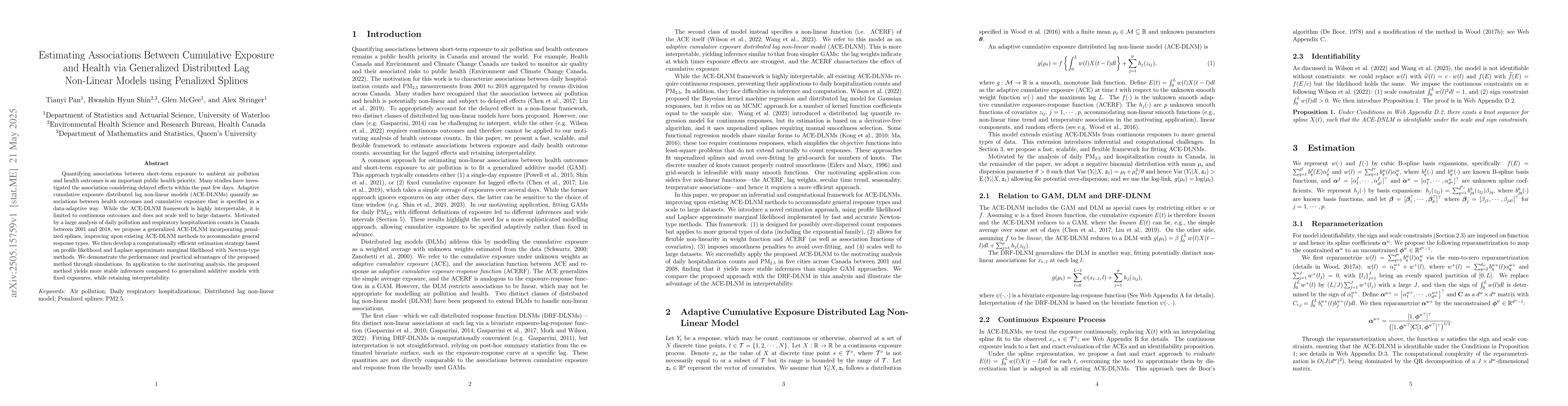 This work extends existing ACE-DLNM frameworks by allowing for general response types and improving computational efficiency, making it applicable to large-scale real-world datasets like daily pollution and respiratory hospitalization counts in Canada.