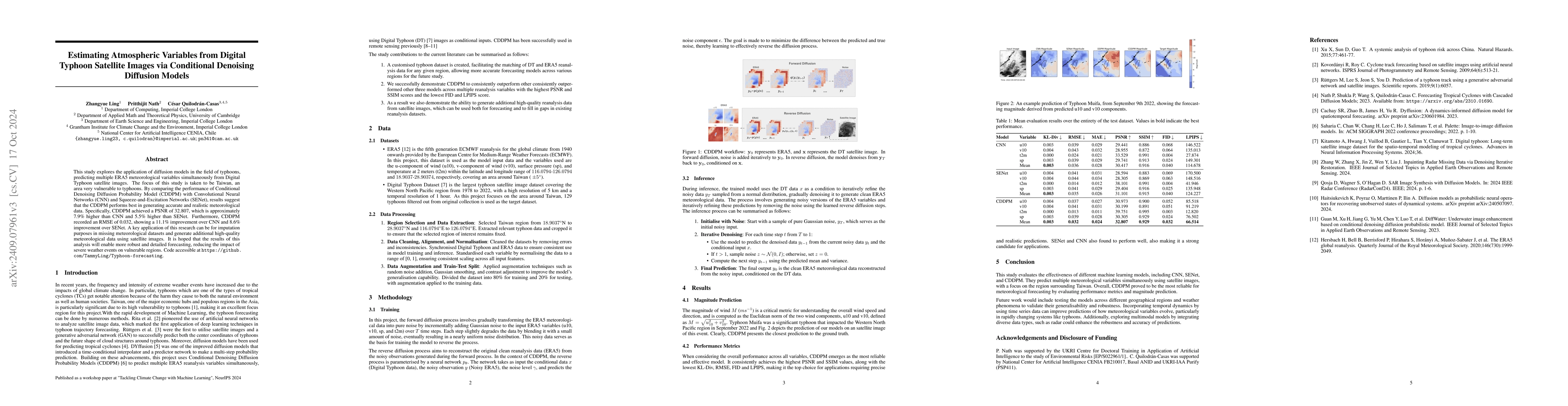 This study uses Conditional Denoising Diffusion Probability Models (CDDPM) to predict ERA5 meteorological variables from Digital Typhoon satellite images, showing better performance than CNN and SENet, with potential applications in meteorological data imputation and forecasting for typhoon-prone areas like Taiwan.