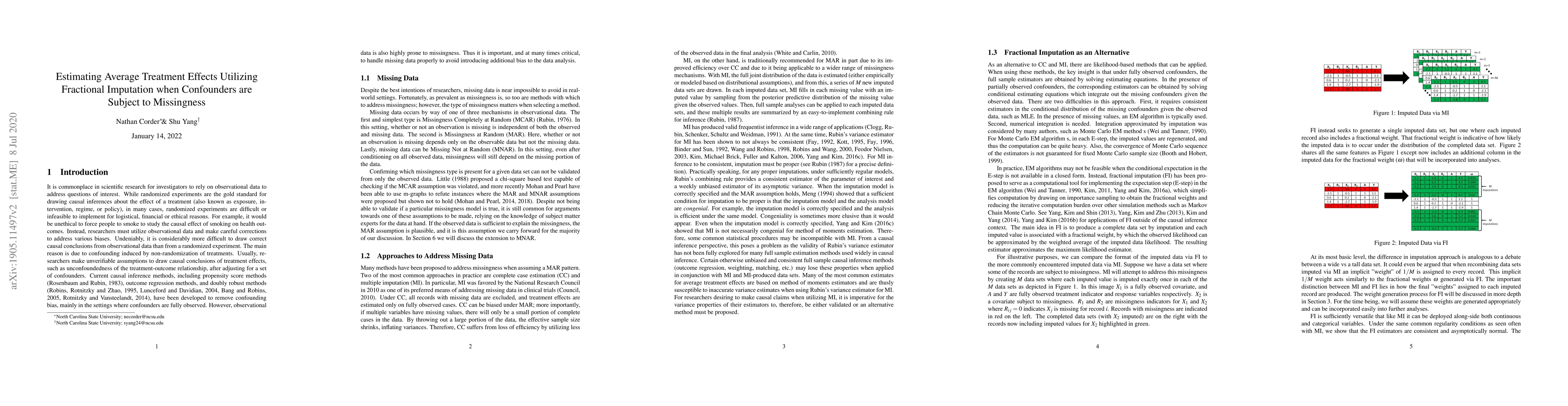This paper develops fractional imputation methods to estimate average treatment effects when confounders are subject to missingness. The proposed method is shown to be asymptotically normal, allowing for consistent variance estimation, and is compared to multiple imputation through simulation studies.