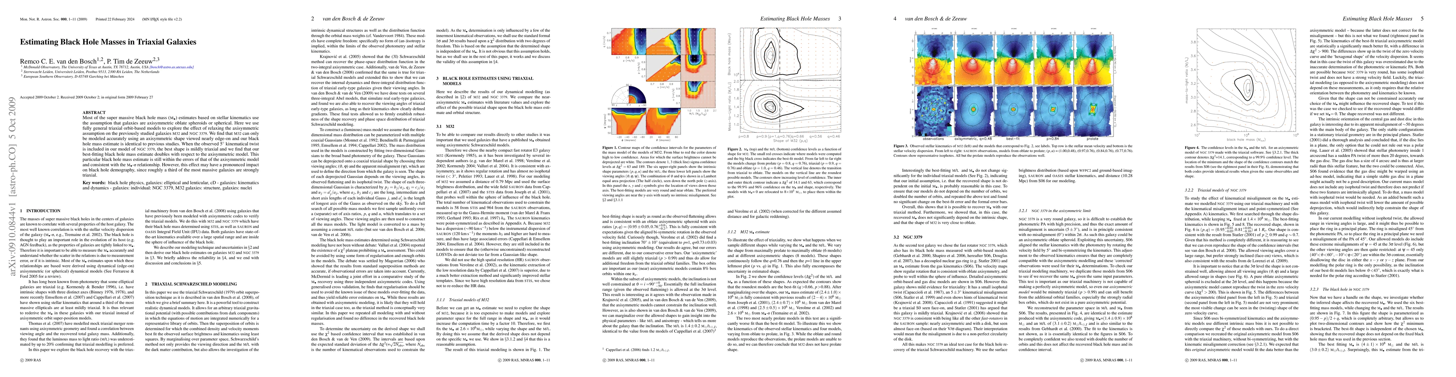 Most of the super massive black hole mass estimates based on stellar kinematics use the assumption that galaxies are axisymmetric oblate spheroids or spherical. Here we use fully general triaxial orbit-based models to explore the effect of relaxing the axisymmetric assumption on the previously studied galaxies M32 and NGC 3379. We find that M32 can only be modeled accurately using an axisymmetric shape viewed nearly edge-on and our black hole mass estimate is identical to previous studies. When the observed 5 degrees kinematical twist is included in our model of NGC 3379, the best shape is mildly triaxial and we find that our best-fitting black hole mass estimate doubles with respect to the axisymmetric model. This particular black hole mass estimate is still within the errors of that of the axisymmetric model and consistent with the M-sigma relationship. However, this effect may have a pronounced impact on black hole demography, since roughly a third of the most massive galaxies are strongly triaxial.