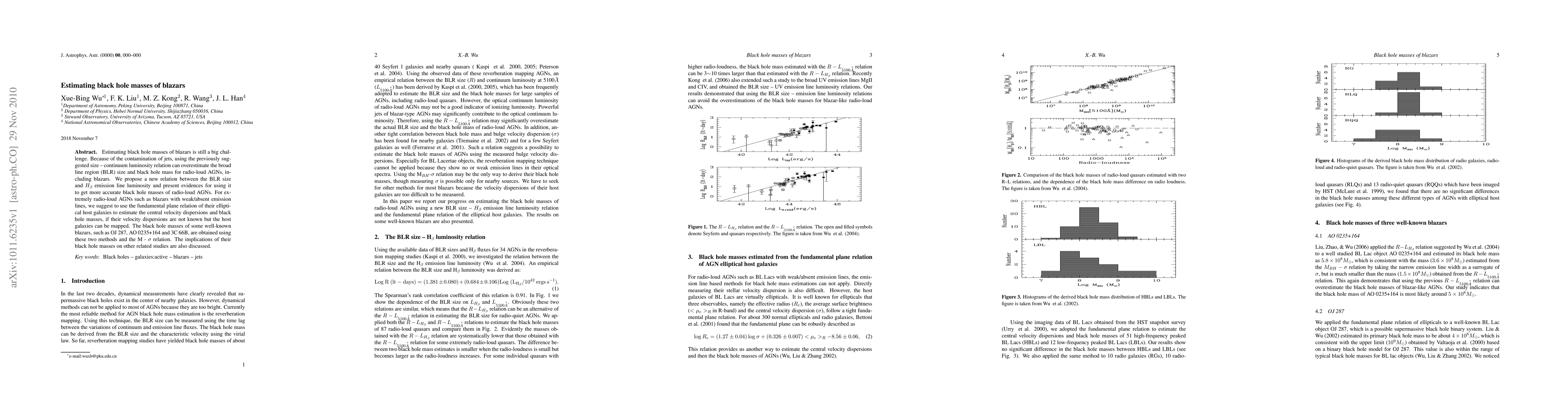 The study proposes using two methods to estimate black hole masses of blazars: a new BLR size–Hβ emission line luminosity relation and the fundamental plane relation of elliptical host galaxies.