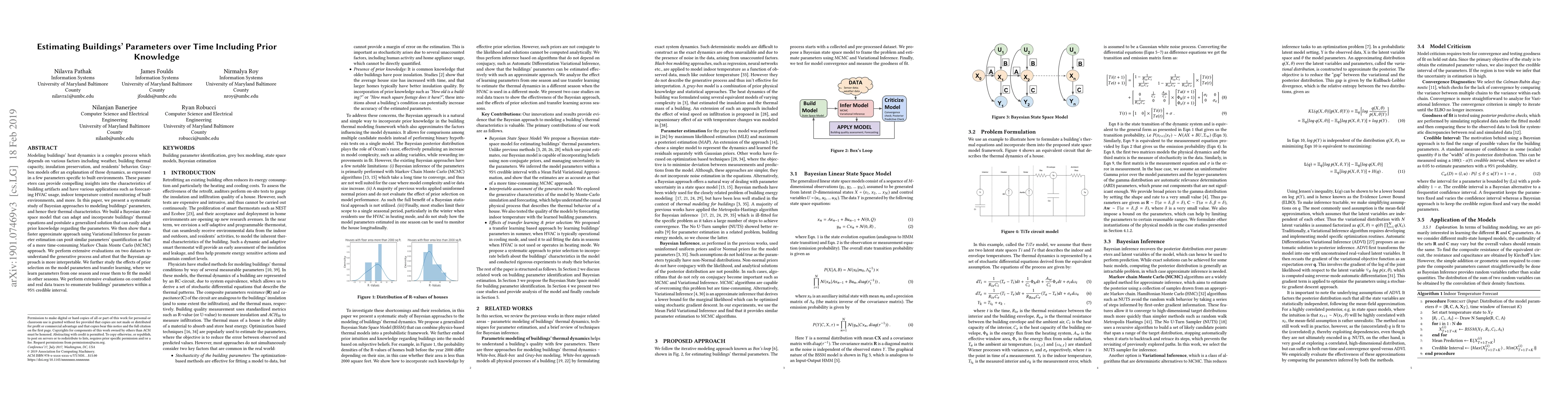 Modeling buildings' heat dynamics is a complex process which depends on various factors including weather, building thermal capacity, insulation preservation, and residents' behavior. Gray-box models offer a causal inference of those dynamics expressed in few parameters specific to built environments. These parameters can provide compelling insights into the characteristics of building artifacts and have various applications such as forecasting HVAC usage, indoor temperature control monitoring of built environments, etc. In this paper, we present a systematic study of modeling buildings' thermal characteristics and thus derive the parameters of built conditions with a Bayesian approach. We build a Bayesian state-space model that can adapt and incorporate buildings' thermal equations and propose a generalized solution that can easily adapt prior knowledge regarding the parameters. We show that a faster approximate approach using variational inference for parameter estimation can provide similar parameters as that of a more time-consuming Markov Chain Monte Carlo (MCMC) approach. We perform extensive evaluations on two datasets to understand the generative process and show that the Bayesian approach is more interpretable. We further study the effects of prior selection for the model parameters and transfer learning, where we learn parameters from one season and use them to fit the model in the other. We perform extensive evaluations on controlled and real data traces to enumerate buildings' parameter within a 95% credible interval.