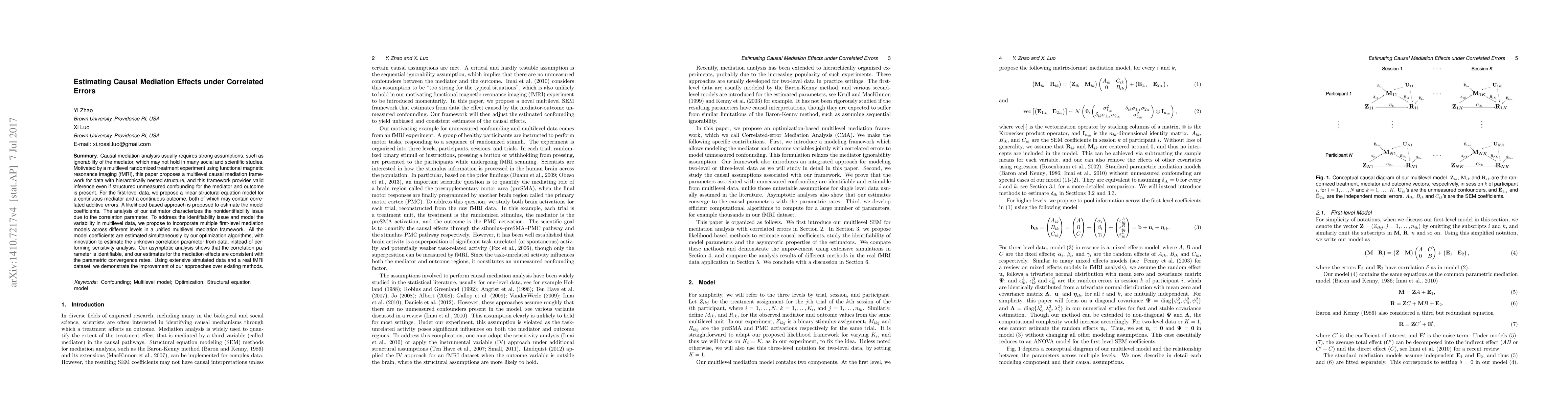 Causal mediation analysis usually requires strong assumptions, such as ignorability of the mediator, which may not hold in many social and scientific studies. Motivated by a multilevel randomized treatment experiment using functional magnetic resonance imaging (fMRI), this paper proposes a multilevel causal mediation framework for data with hierarchically nested structure, and this framework provides valid inference even if structured unmeasured confounding for the mediator and outcome is present. For the first-level data, we propose a linear structural equation model for a continuous mediator and a continuous outcome, both of which may contain correlated additive errors. A likelihood-based approach is proposed to estimate the model coefficients. The analysis of our estimator characterizes the nonidentifiability issue due to the correlation parameter. To address the identifiability issue and model the variability in multilevel data, we propose to incorporate multiple first-level mediation models across different levels in a unified multilevel mediation framework. All the model coefficients are estimated simultaneously by our optimization algorithms, with innovation to estimate the unknown correlation parameter from data, instead of performing sensitivity analysis. Our asymptotic analysis shows that the correlation parameter is identifiable, and our estimates for the mediation effects are consistent with the parametric convergence rates. Using extensive simulated data and a real fMRI dataset, we demonstrate the improvement of our approaches over existing methods.