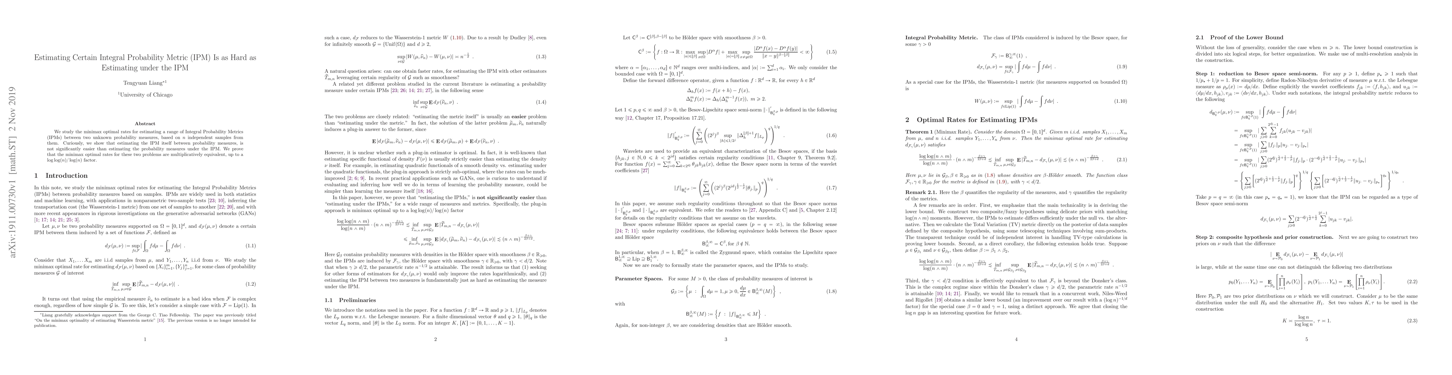We study the minimax optimal rates for estimating a range of Integral Probability Metrics (IPMs) between two unknown probability measures, based on $n$ independent samples from them. Curiously, we show that estimating the IPM itself between probability measures, is not significantly easier than estimating the probability measures under the IPM. We prove that the minimax optimal rates for these two problems are multiplicatively equivalent, up to a $\log \log (n)/\log (n)$ factor.