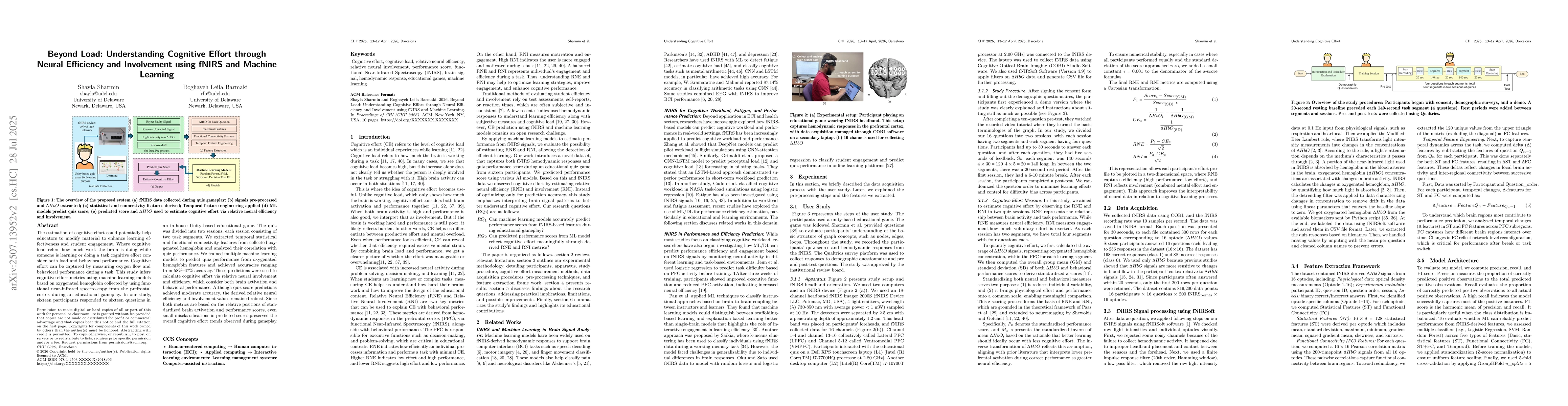 The estimation of cognitive effort could potentially help educators to modify material to enhance learning effectiveness and student engagement. Where cognitive load refers how much work the brain is doing while someone is learning or doing a task cognitive effort consider both load and behavioral performance. Cognitive effort can be captured by measuring oxygen flow and behavioral performance during a task. This study infers cognitive effort metrics using machine learning models based on oxygenated hemoglobin collected by using functional near-infrared spectroscopy from the prefrontal cortex during an educational gameplay. In our study, sixteen participants responded to sixteen questions in an in-house Unity-based educational game. The quiz was divided into two sessions, each session consisting of two task segments. We extracted temporal statistical and functional connectivity features from collected oxygenated hemoglobin and analyzed their correlation with quiz performance. We trained multiple machine learning models to predict quiz performance from oxygenated hemoglobin features and achieved accuracies ranging from 58\% to 67\% accuracy. These predictions were used to calculate cognitive effort via relative neural involvement and efficiency, which consider both brain activation and behavioral performance. Although quiz score predictions achieved moderate accuracy, the derived relative neural efficiency and involvement values remained robust. Since both metrics are based on the relative positions of standardized brain activation and performance scores, even small misclassifications in predicted scores preserved the overall cognitive effort trends observed during gameplay.