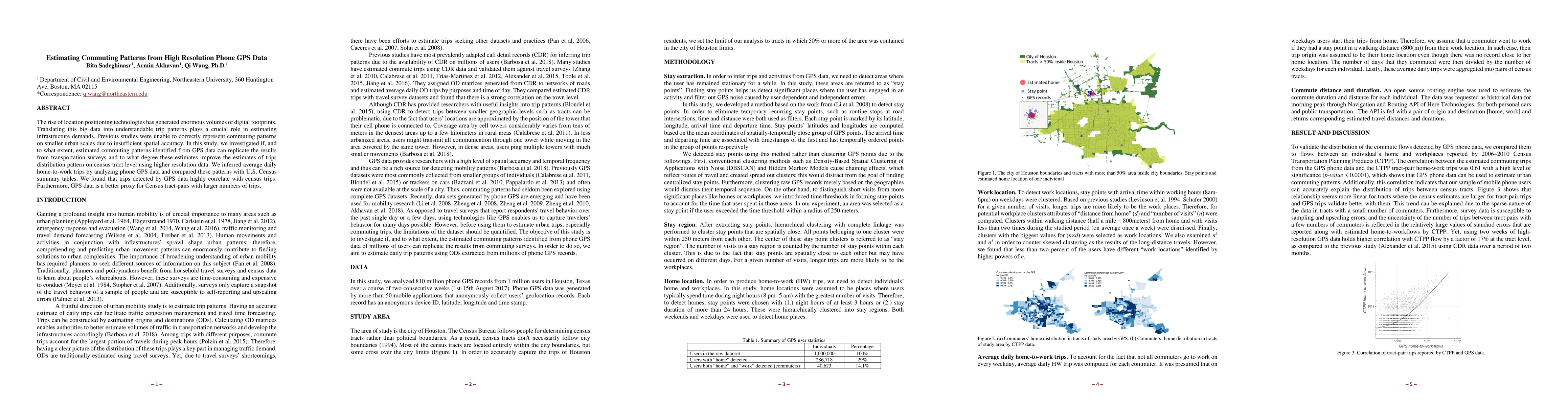 This study uses high-resolution GPS data from phones to estimate commuting patterns, finding strong correlations between these patterns and U.S. Census data. The research demonstrates that GPS data provides a more accurate representation of commuting on smaller urban scales compared to traditional methods.