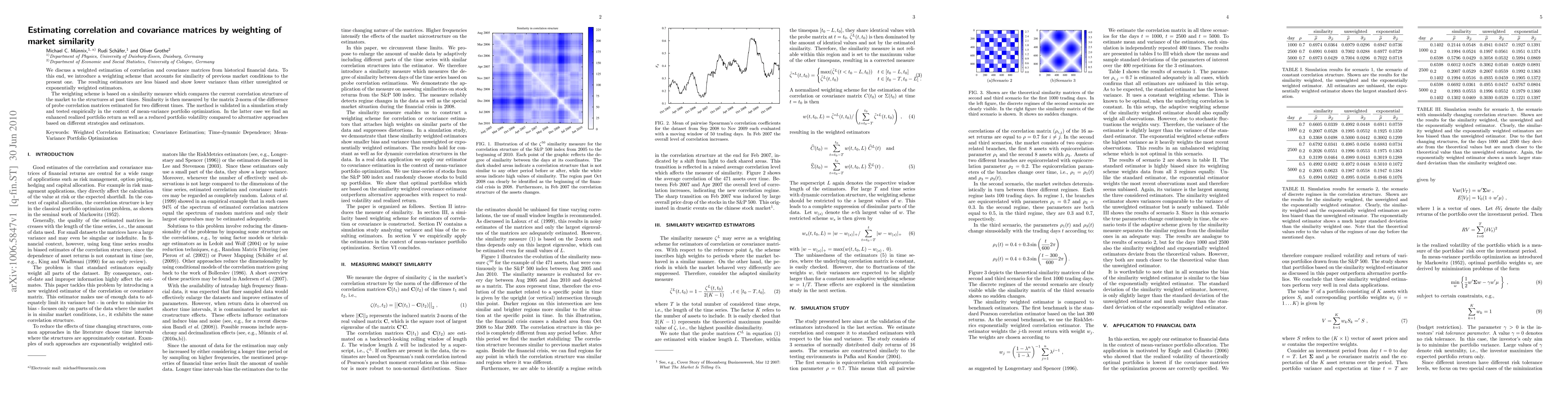 Researchers develop a new method to estimate correlation and covariance matrices from financial data by weighing market similarity, resulting in less biased and lower variance estimates that improve portfolio optimization outcomes.
