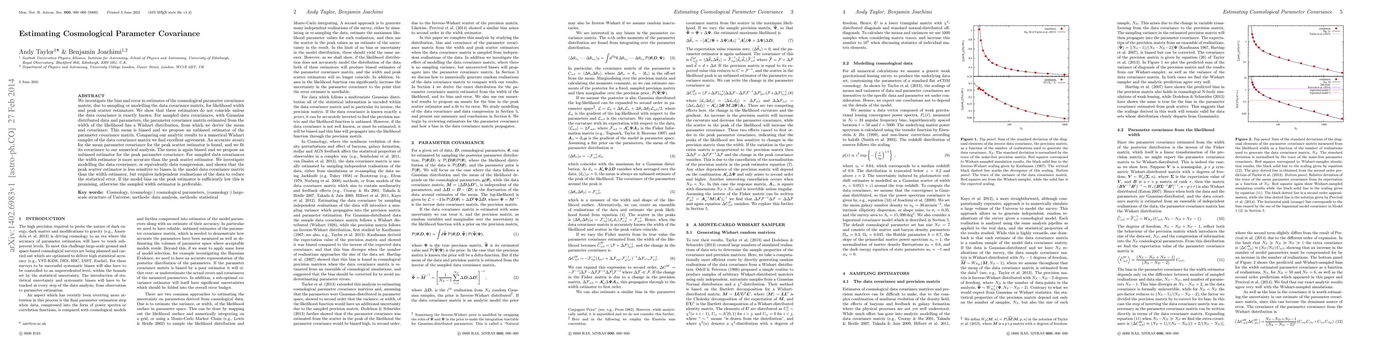 We investigate the bias and error in estimates of the cosmological parameter covariance matrix, due to sampling or modelling the data covariance matrix, for likelihood width and peak scatter estimators. We show that these estimators do not coincide unless the data covariance is exactly known. For sampled data covariances, with Gaussian distributed data and parameters, the parameter covariance matrix estimated from the width of the likelihood has a Wishart distribution, from which we derive the mean and covariance. This mean is biased and we propose an unbiased estimator of the parameter covariance matrix. Comparing our analytic results to a numerical Wishart sampler of the data covariance matrix we find excellent agreement. An accurate ansatz for the mean parameter covariance for the peak scatter estimator is found, and we fit its covariance to our numerical analysis. The mean is again biased and we propose an unbiased estimator for the peak parameter covariance. For sampled data covariances the width estimator is more accurate than the peak scatter estimator. We investigate modelling the data covariance, or equivalently data compression, and shown that the peak scatter estimator is less sensitive to biases in the model data covariance matrix than the width estimator, but requires independent realisations of the data to reduce the statistical error. If the model bias on the peak estimator is sufficiently low this is promising, otherwise the sampled width estimator is preferable.