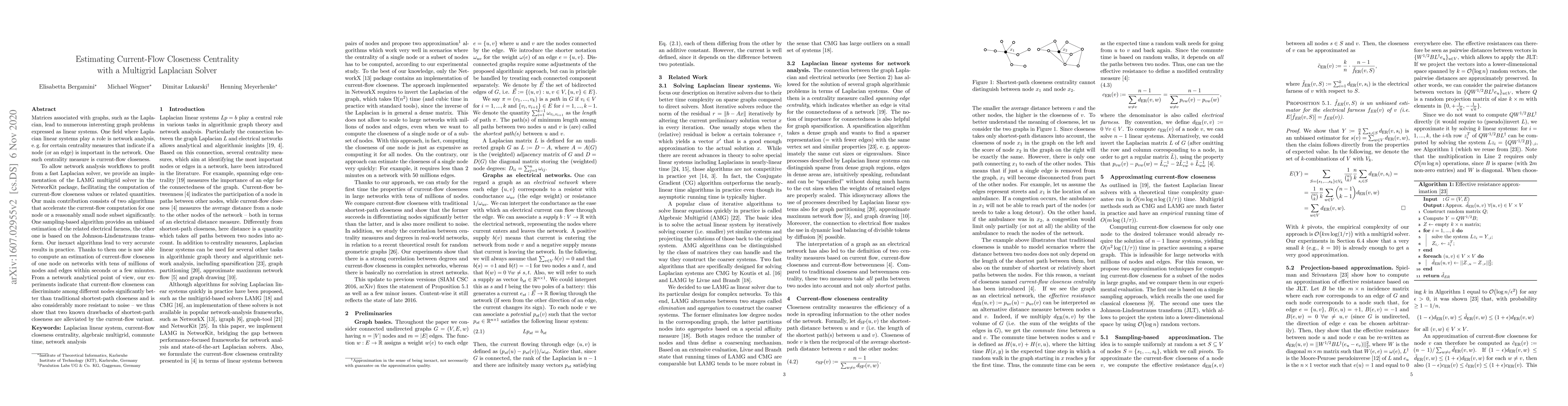 This paper presents algorithms for fast computation of current-flow closeness centrality using a multigrid Laplacian solver. It introduces two efficient algorithms: one sampling-based and one based on the Johnson-Lindenstrauss transform, enabling accurate estimation of current-flow closeness on large networks within seconds.