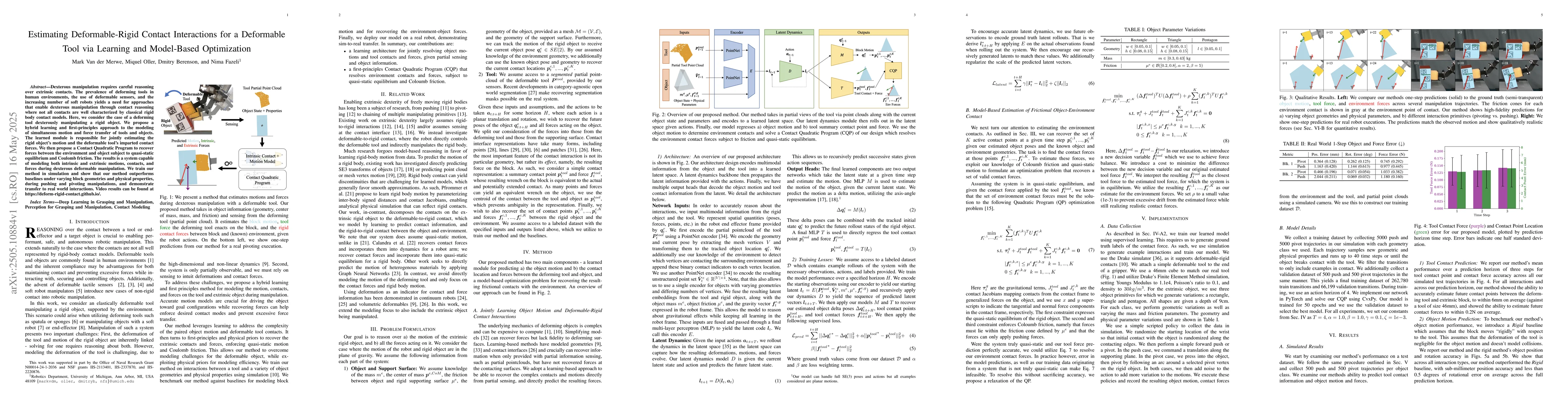 A new approach combines learning and model-based optimization to estimate deformable-rigid contact interactions for dexterous manipulation of objects with deforming tools. The method outperforms baselines in simulation and real-world interactions, enabling more precise control over delicate tasks.