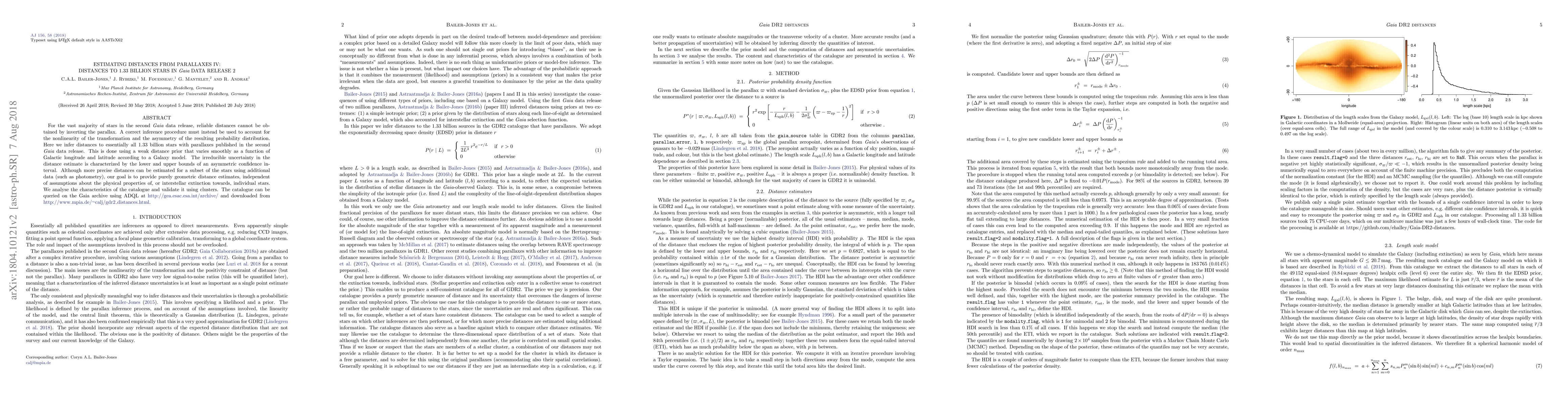 This paper presents a method for estimating distances to 1.33 billion stars using Gaia Data Release 2, employing a probabilistic approach to account for the nonlinearity and asymmetry in parallax measurements. The resulting distance estimates are purely geometric and independent of star-specific assumptions.
