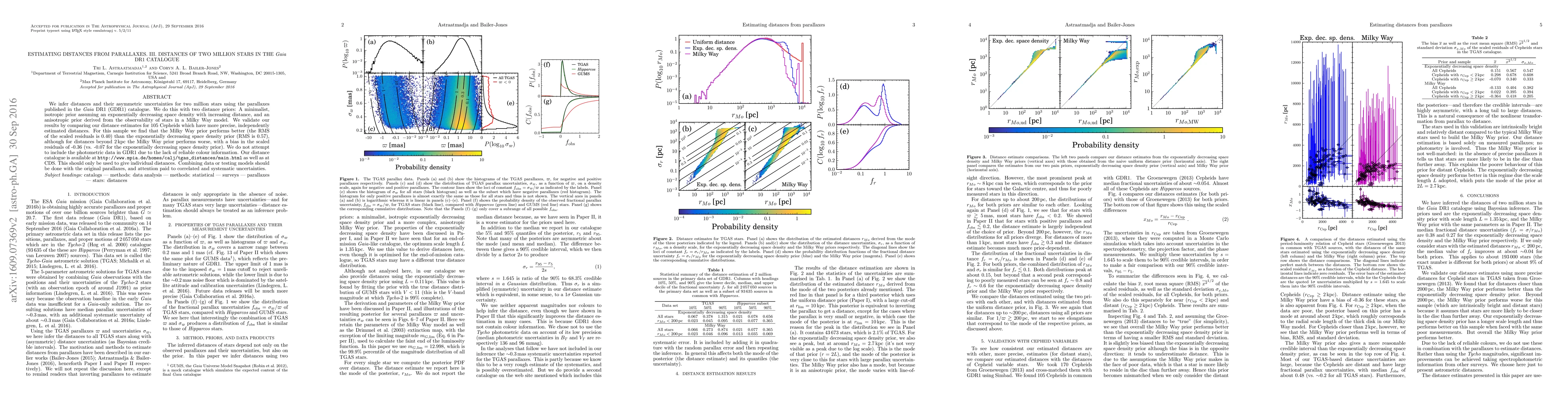 Researchers estimated distances for 2 million stars in the Gaia DR1 catalogue using parallaxes, with two different distance priors, and validated their results against independently measured Cepheid stars.
