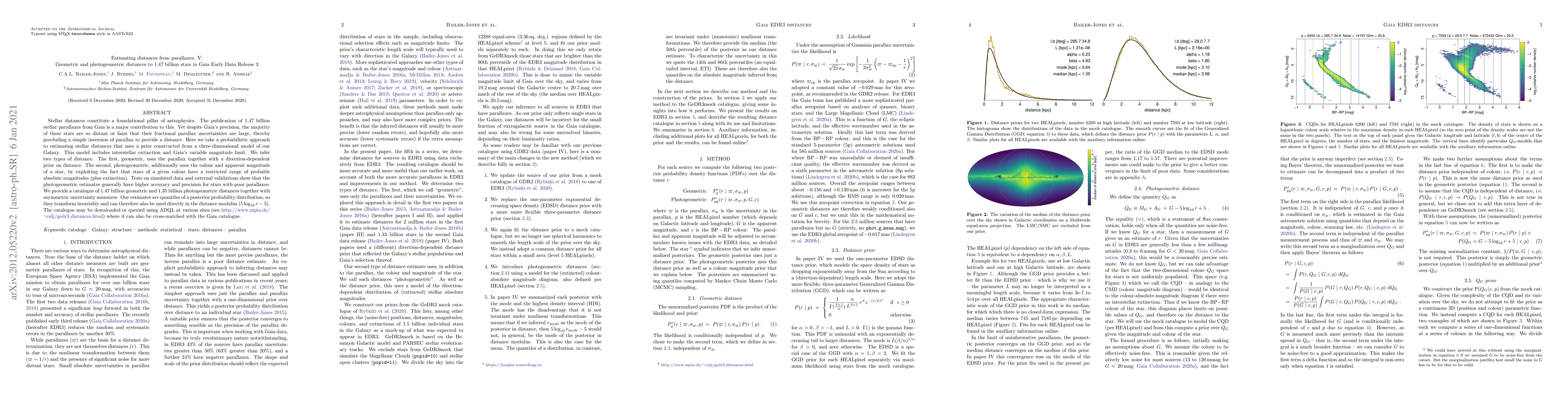 This paper presents a probabilistic approach to estimate distances for 1.47 billion stars using Gaia Early Data Release 3 parallaxes, incorporating a three-dimensional Galactic model to account for interstellar extinction and Gaia's magnitude limit. The study provides two types of distance estimates: geometric and photogeometric, with the latter using color and apparent magnitude data, showing higher accuracy for stars with poor parallaxes.