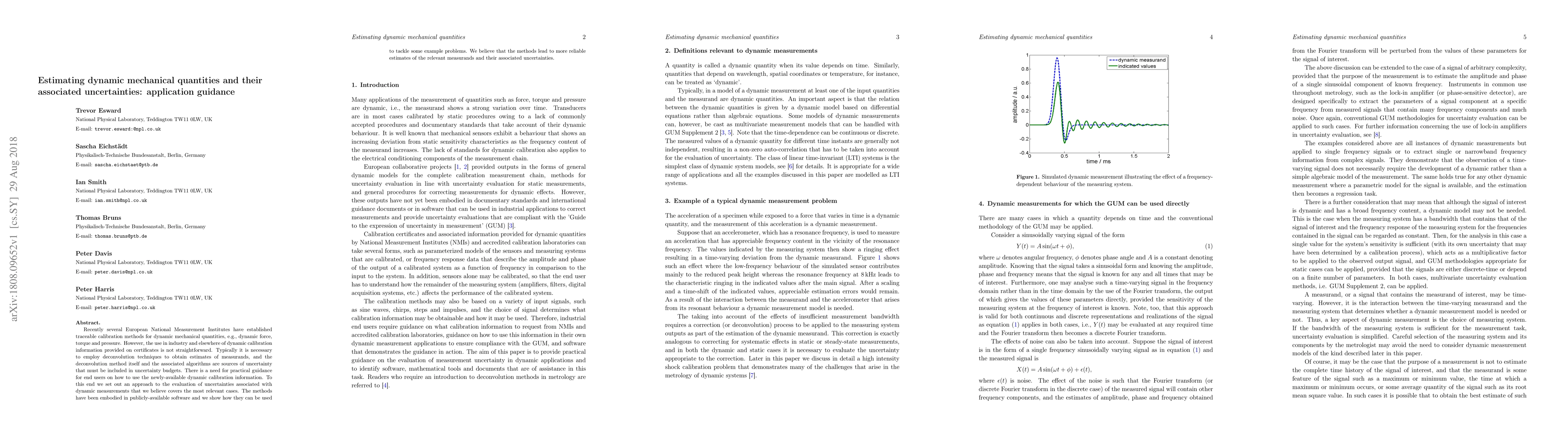 The paper offers guidance on using dynamic mechanical calibration data, addressing uncertainty evaluation through practical methods. It introduces software tools for reliable estimation of measurands and their uncertainties in industrial applications.