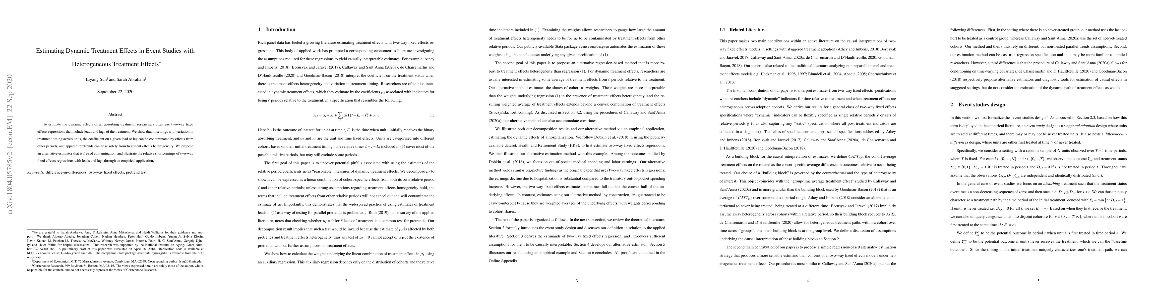 This paper proposes a new estimator to accurately estimate dynamic treatment effects in event studies where treatment timing varies across units, addressing the issue of contamination from other periods and heterogeneity in treatment effects. It demonstrates the limitations of traditional two-way fixed effects regressions with leads and lags through an empirical application.