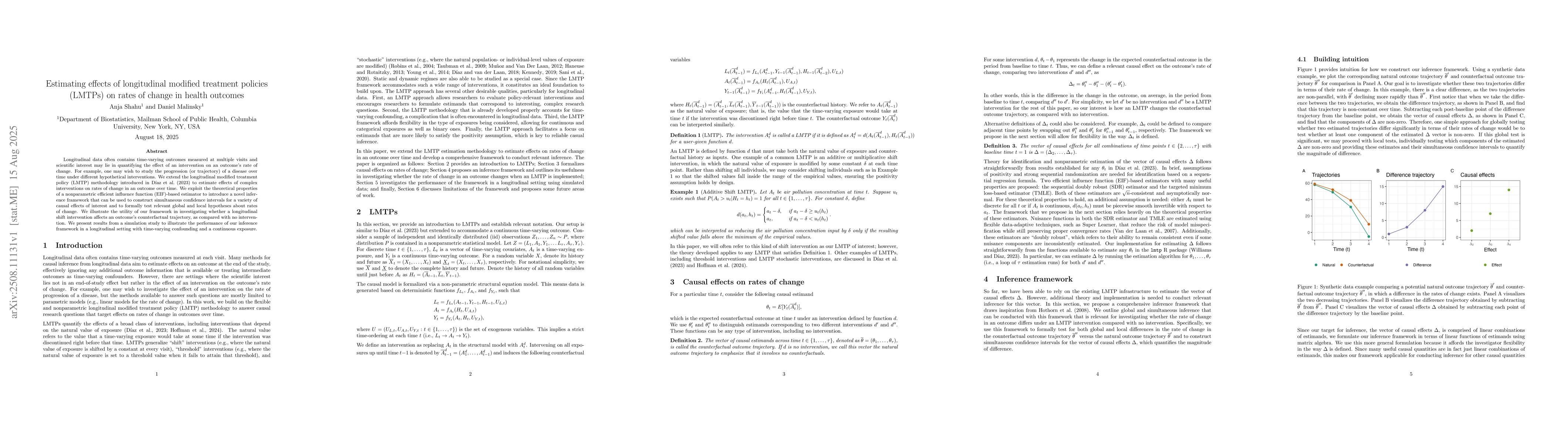 Longitudinal data often contains time-varying outcomes measured at multiple visits and scientific interest may lie in quantifying the effect of an intervention on an outcome's rate of change. For example, one may wish to study the progression (or trajectory) of a disease over time under different hypothetical interventions. We extend the longitudinal modified treatment policy (LMTP) methodology introduced in D\'iaz et al. (2023) to estimate effects of complex interventions on rates of change in an outcome over time. We exploit the theoretical properties of a nonparametric efficient influence function (EIF)-based estimator to introduce a novel inference framework that can be used to construct simultaneous confidence intervals for a variety of causal effects of interest and to formally test relevant global and local hypotheses about rates of change. We illustrate the utility of our framework in investigating whether a longitudinal shift intervention affects an outcome's counterfactual trajectory, as compared with no intervention. We present results from a simulation study to illustrate the performance of our inference framework in a longitudinal setting with time-varying confounding and a continuous exposure.