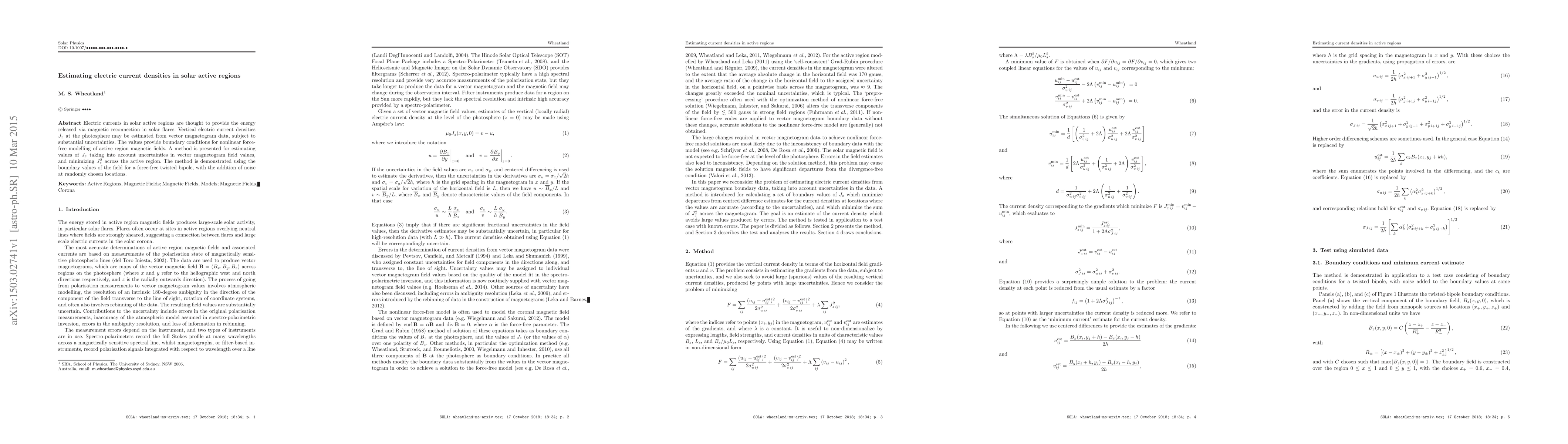 This paper presents a method for estimating vertical electric current densities $J_z$ in solar active regions from vector magnetogram data, addressing uncertainties and minimizing $J_z^2$. The approach is validated using a force-free twisted bipole model with added noise.