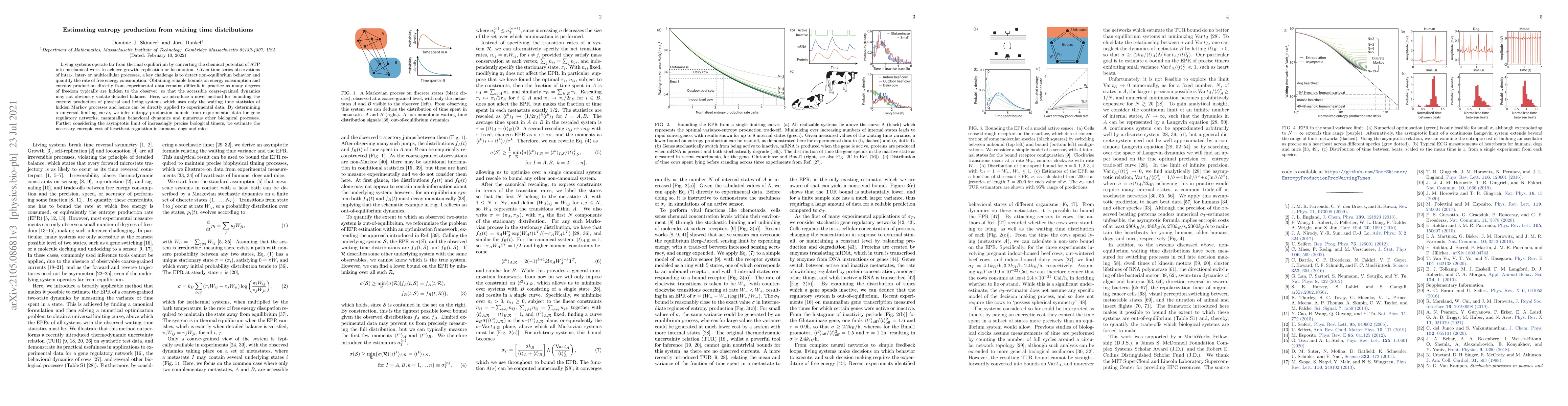 Living systems operate far from thermal equilibrium by converting the chemical potential of ATP into mechanical work to achieve growth, replication or locomotion. Given time series observations of intra-, inter- or multicellular processes, a key challenge is to detect non-equilibrium behavior and quantify the rate of free energy consumption. Obtaining reliable bounds on energy consumption and entropy production directly from experimental data remains difficult in practice as many degrees of freedom typically are hidden to the observer, so that the accessible coarse-grained dynamics may not obviously violate detailed balance. Here, we introduce a novel method for bounding the entropy production of physical and living systems which uses only the waiting time statistics of hidden Markov processes and hence can be directly applied to experimental data. By determining a universal limiting curve, we infer entropy production bounds from experimental data for gene regulatory networks, mammalian behavioral dynamics and numerous other biological processes. Further considering the asymptotic limit of increasingly precise biological timers, we estimate the necessary entropic cost of heartbeat regulation in humans, dogs and mice.