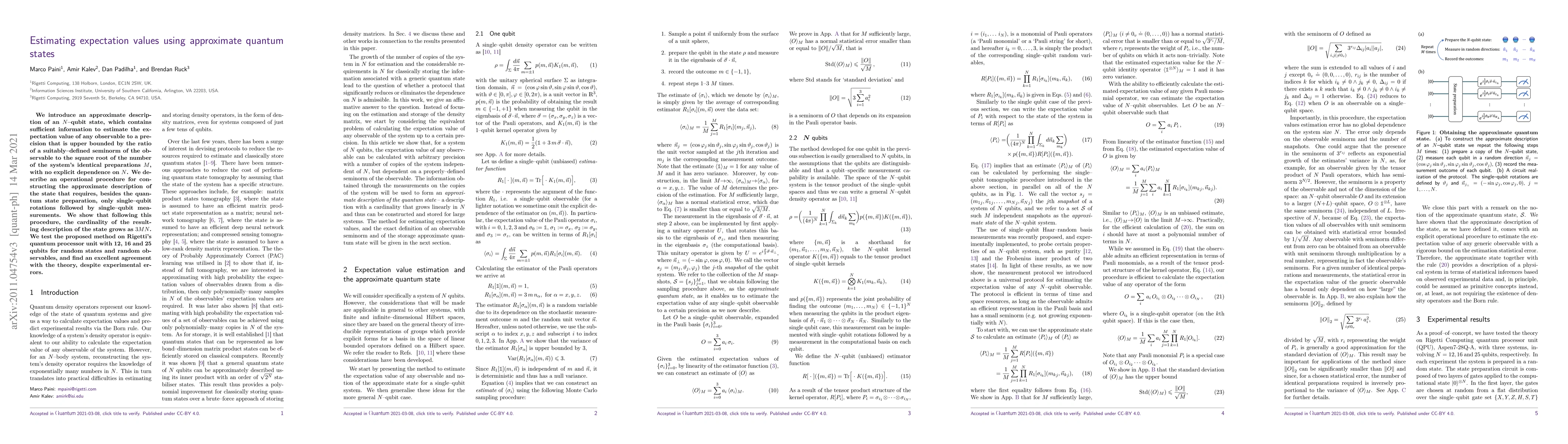 This research introduces a method to estimate expectation values of quantum observables using approximate N-qubit state descriptions. The approach requires single-qubit rotations and measurements, with the error bound independent of qubit number N, growing only with the square root of the number of preparations M. Tests on Rigetti's quantum processors for random states and observables confirm the method's accuracy despite experimental errors.