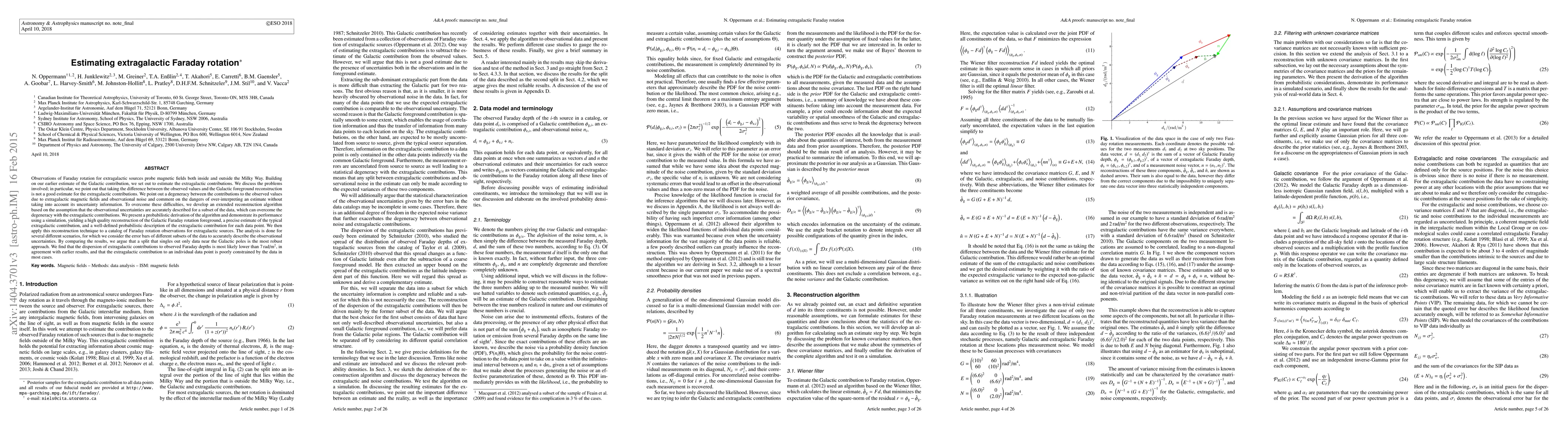 This paper develops a reconstruction algorithm to estimate the extragalactic contributions to Faraday rotation, addressing the challenges of observational noise and degeneracies. The method provides a probabilistic description of extragalactic contributions and suggests that their dispersion is likely below 7 rad/m^2.
